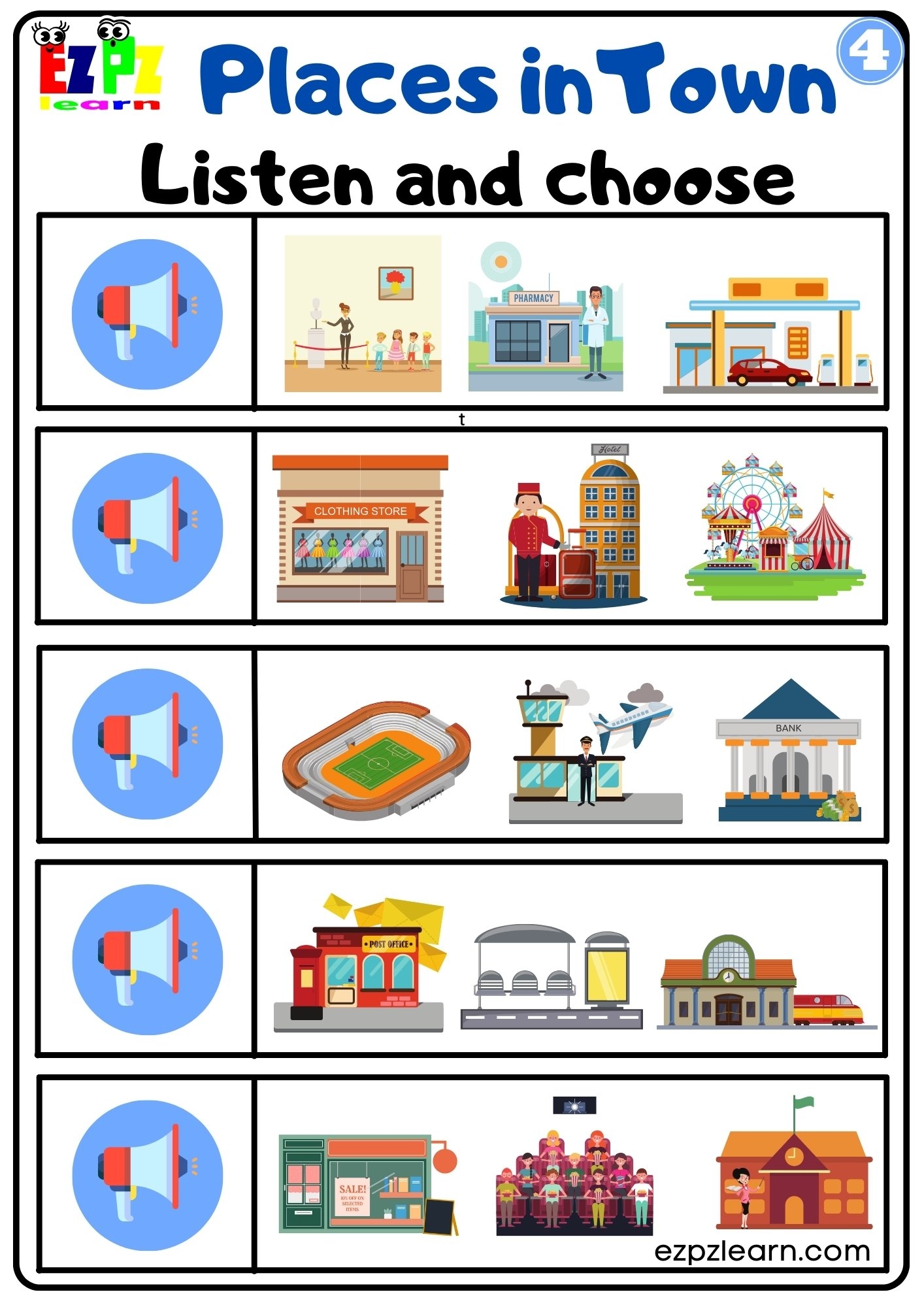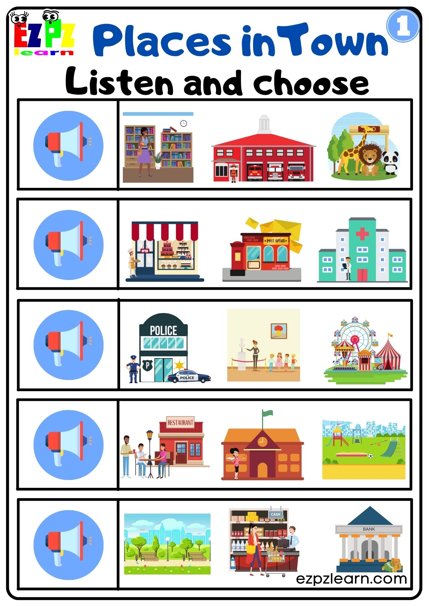 Places In The City Vocabulary Interactive Worksheet Listen And Choose The Correct Images Activity For Home Schooling Kindergarten And ESL G1 Ezpzlearn