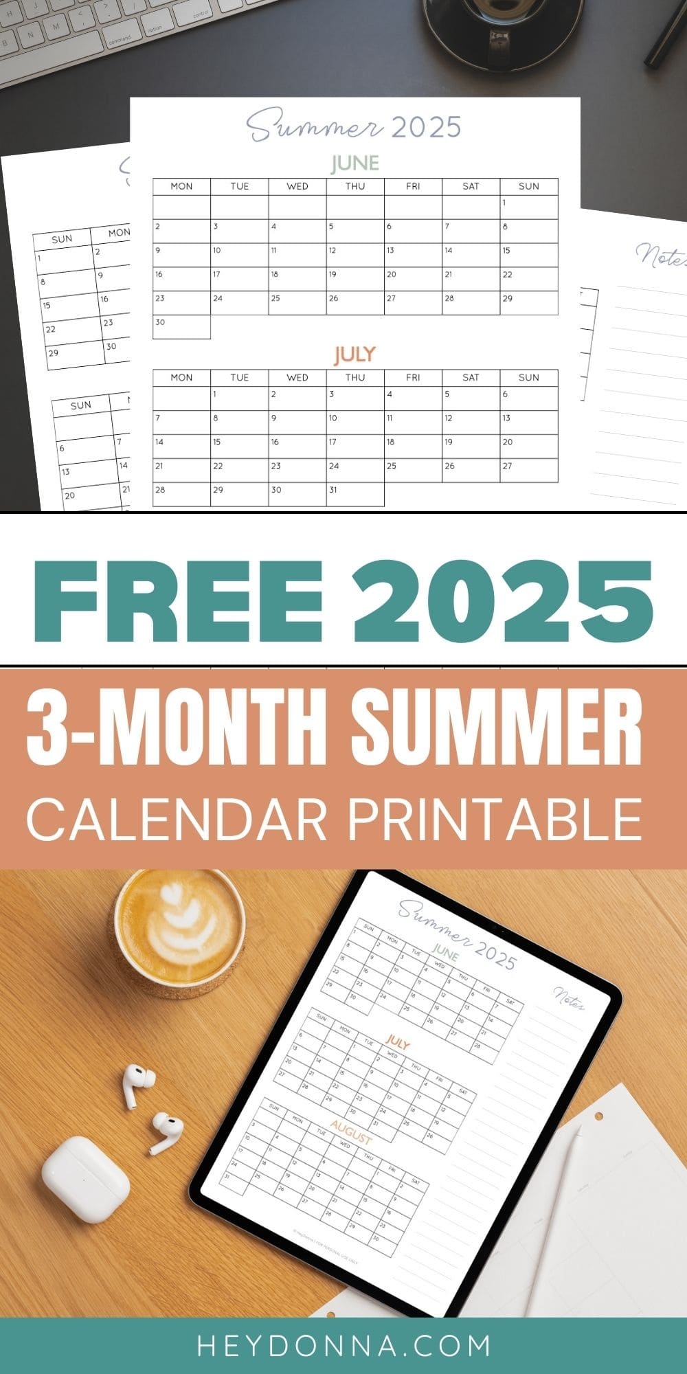 3 Month Summer Calendar 2025 Printable