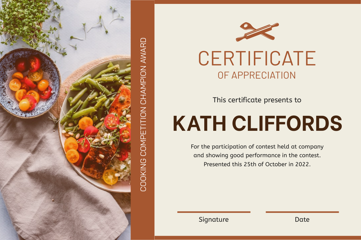 Brown Cooking Competition Award Certificate Certificate Template