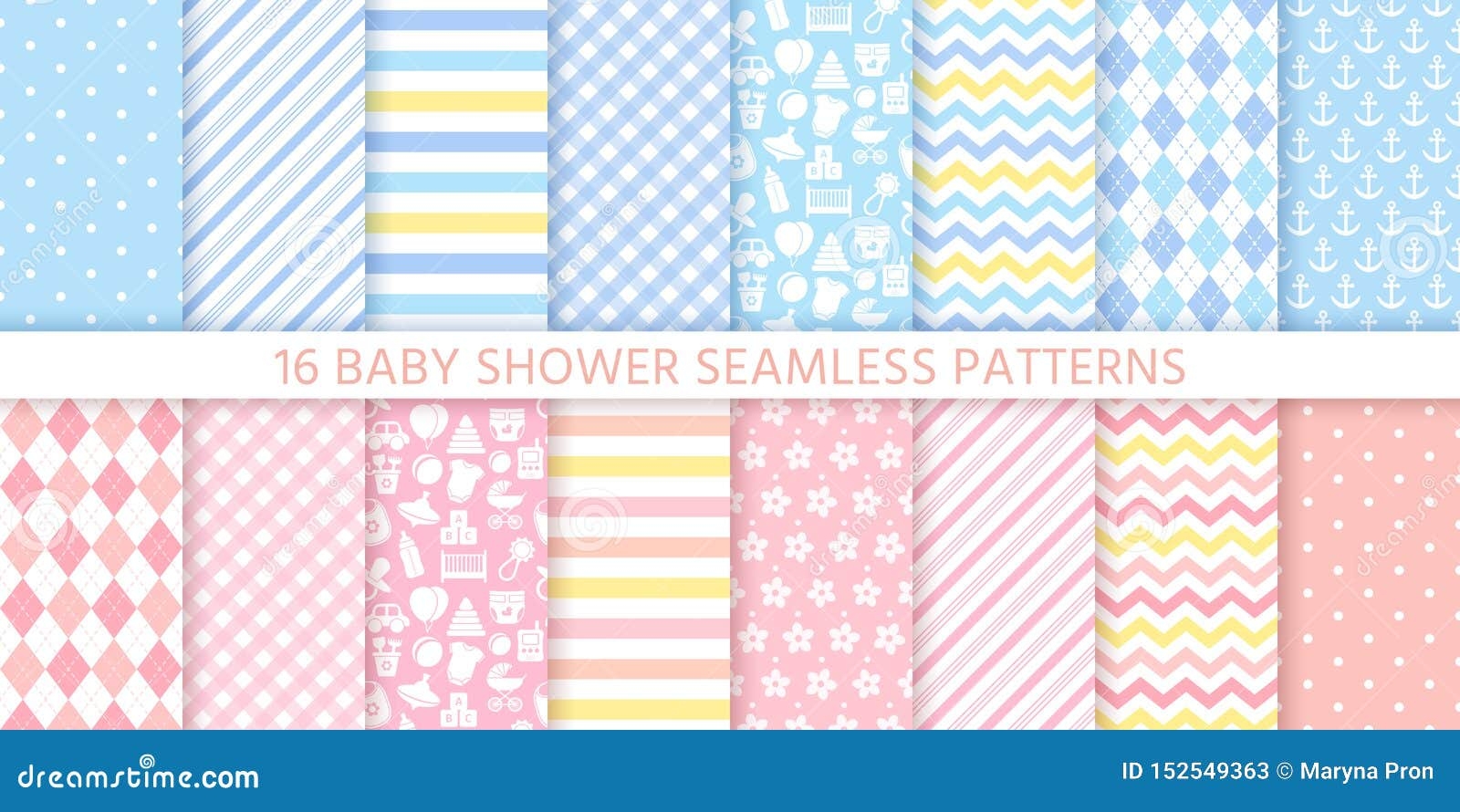 Baby Shower Seamless Patterns For Baby Girl And Boy Vector Illustration Stock Vector Illustration Of Gift Geometric 152549363