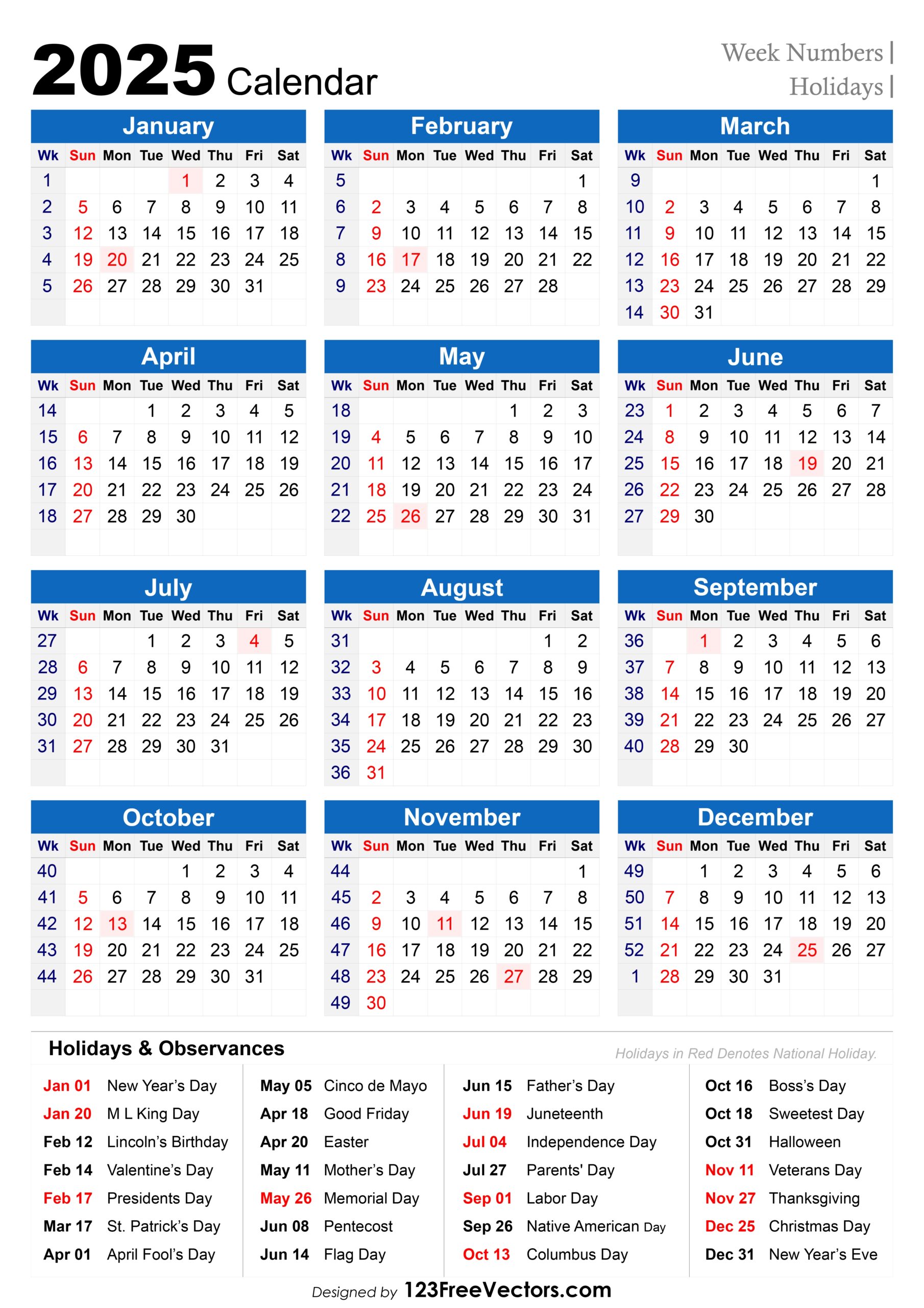 Free Download 2025 Calendar With Week Numbers