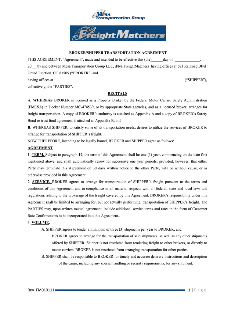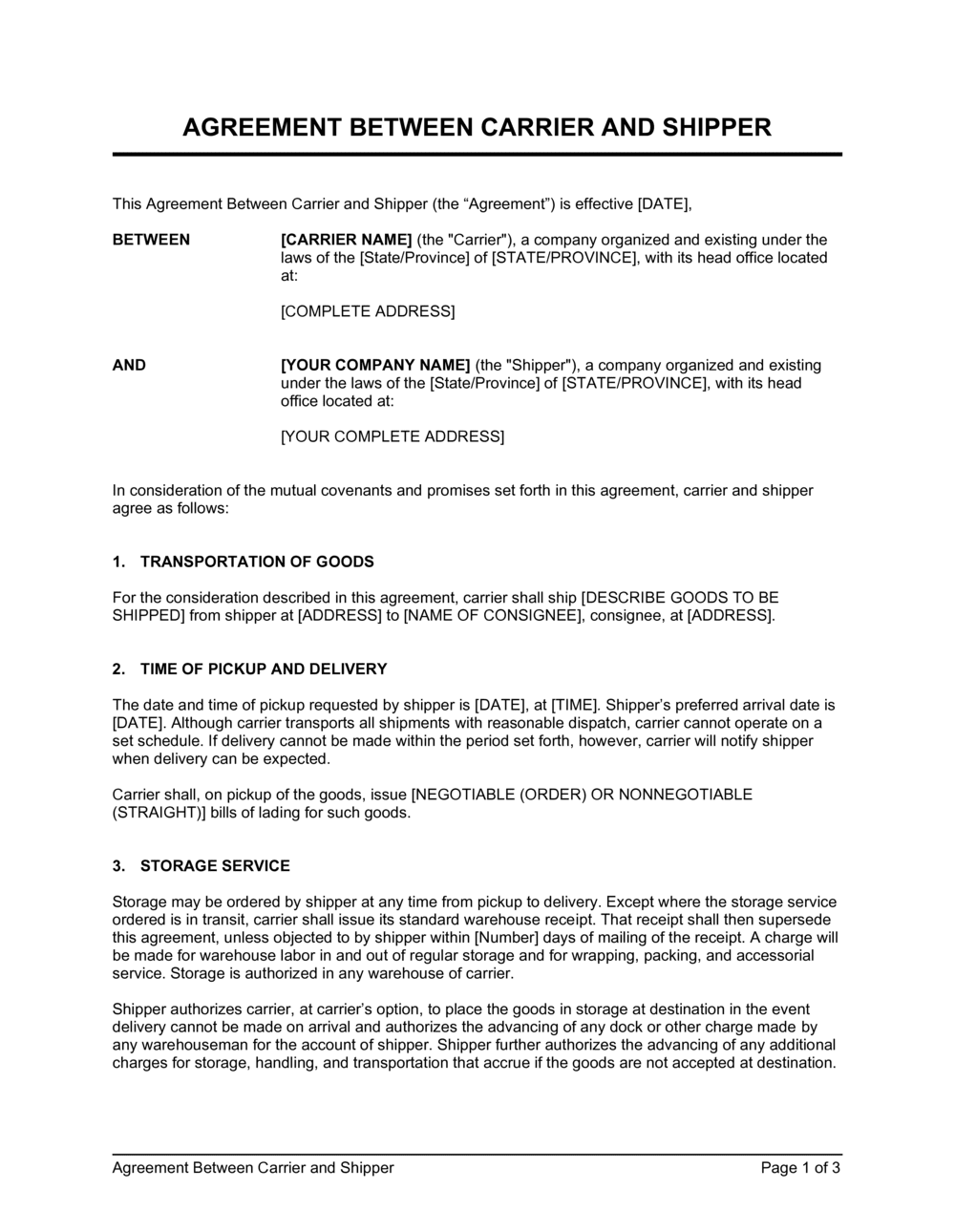 Shipper Carrier Agreement Template Fill Out Sign Online DocHub