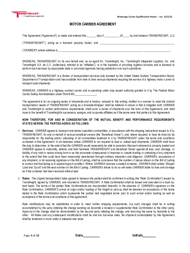 Logistics Broker Carrier Agreement Fill Online Printable Fillable Blank PdfFiller