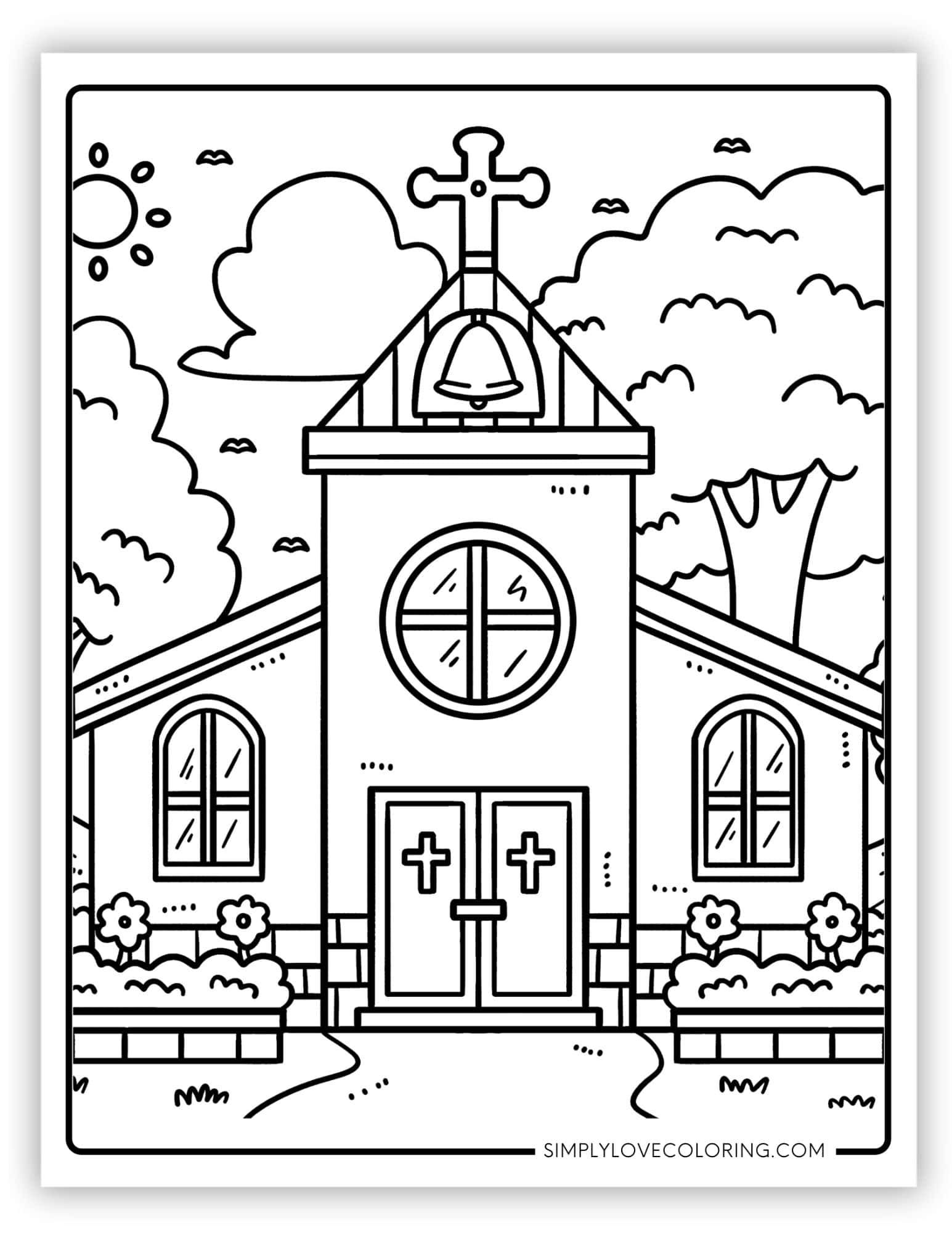 Coloring pages featuring churches adorned with pumpkins and surrounded by colorful trees can help you get into the fall spirit. You can use these pages as a creative way to decorate your home or as a fun activity to do with your family.