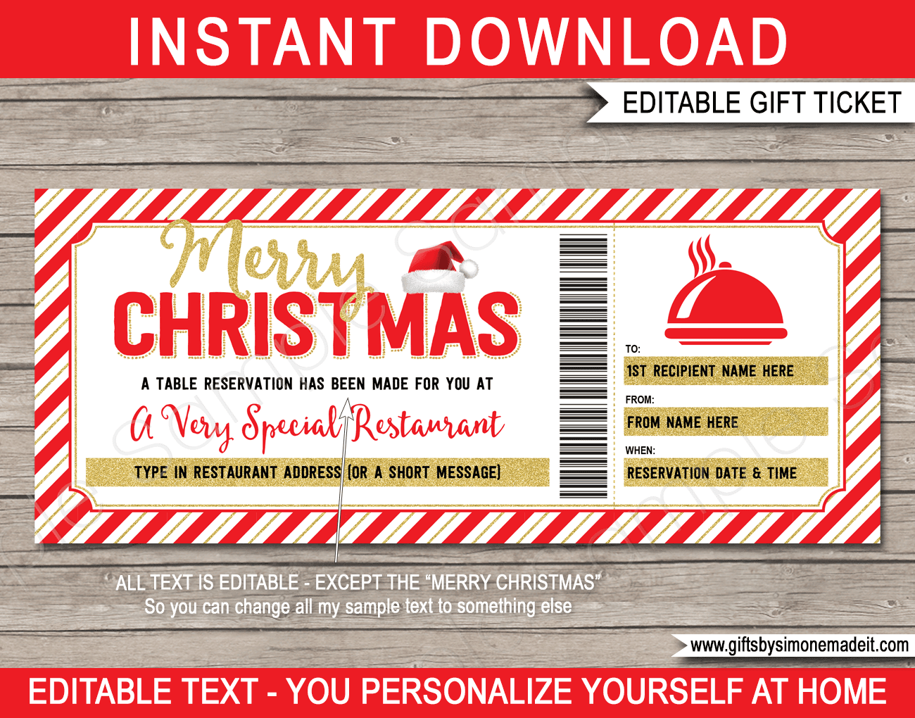 Christmas Dinner Gift Voucher Template Printable Restaurant Certificate