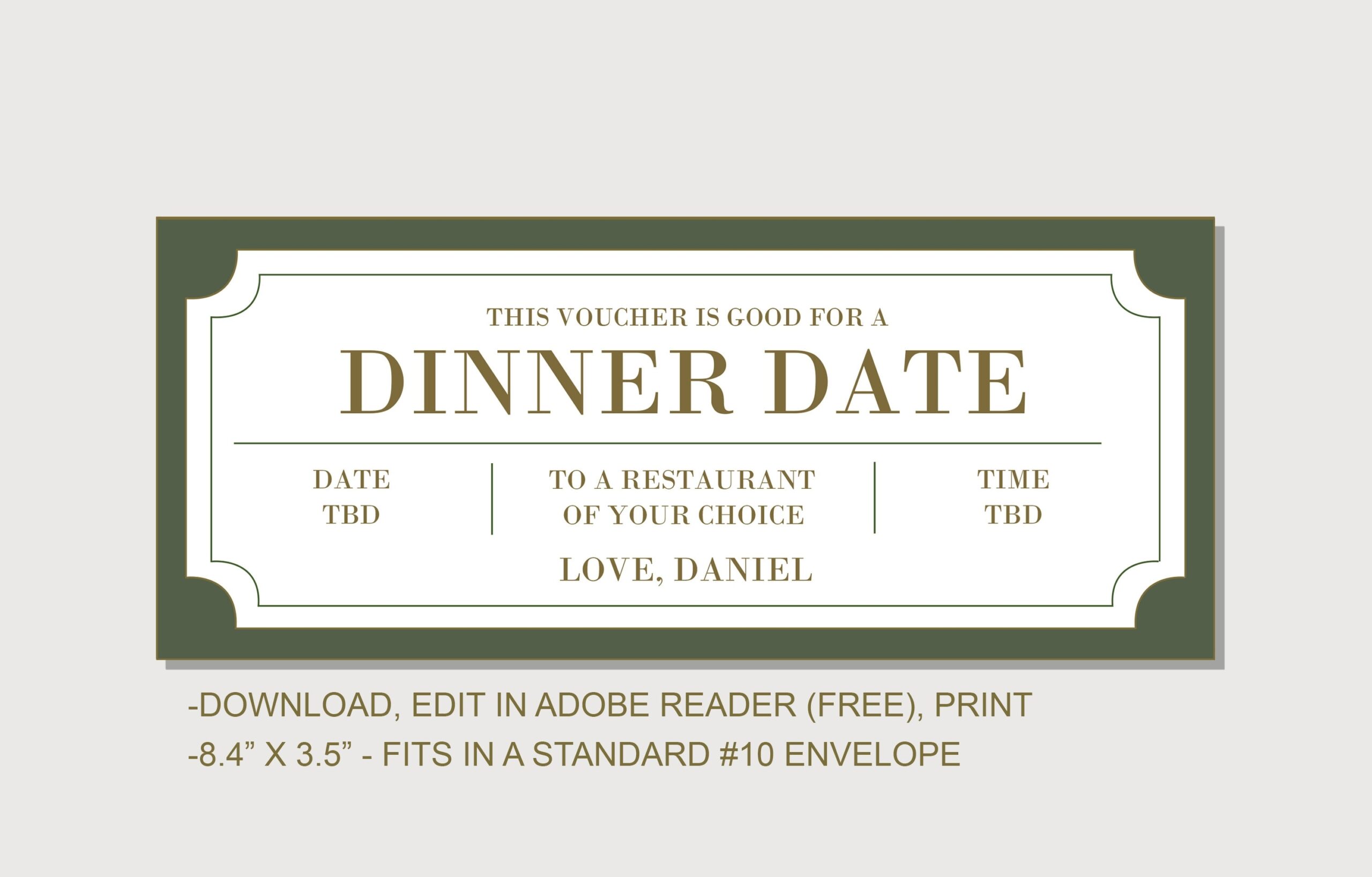 Dinner Date Gift Certificate Template INSTANT DOWNLOAD EDITABLE Text Printable Personalized Birthday Anniversary Fathers Day Etsy