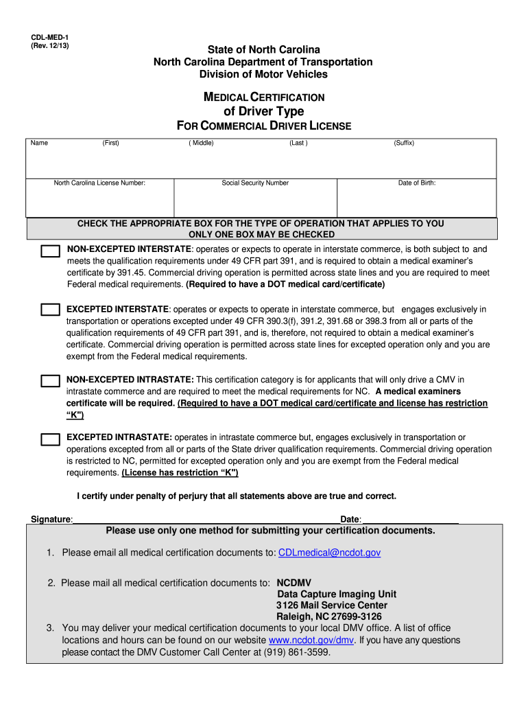 2013 2025 Form NC CDL MED 1 Fill Online Printable Fillable Blank PdfFiller