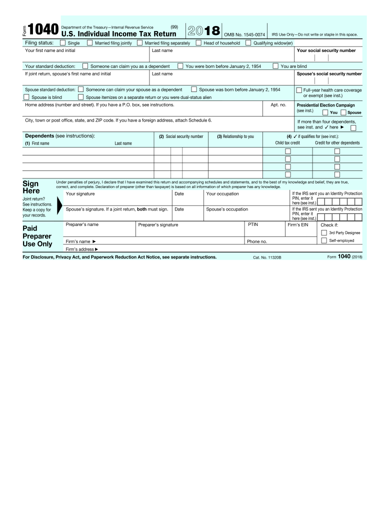 2018 Form IRS 1040 Fill Online Printable Fillable Blank PdfFiller