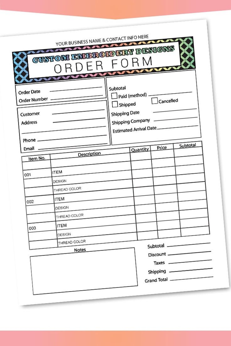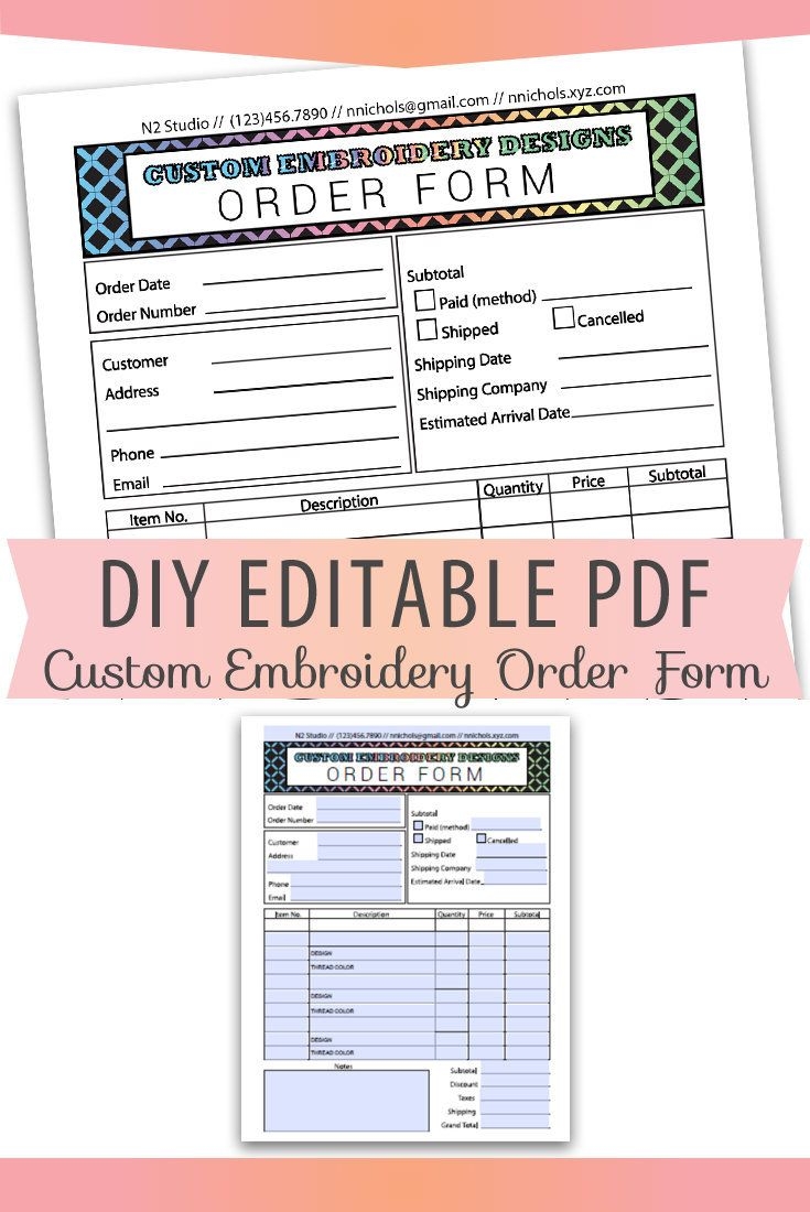 Free Embroidery Order Form Printable