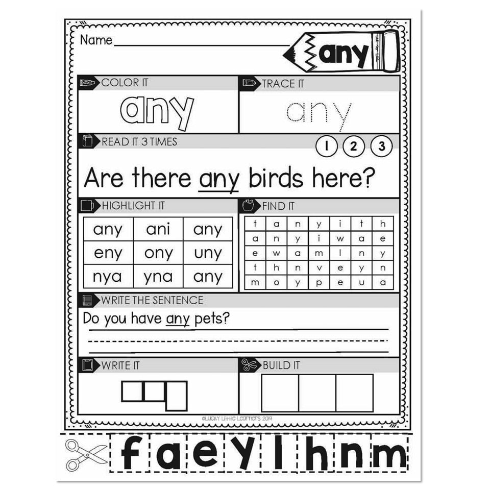 1st Grade Sight Word Worksheets Any Lucky Little Learners