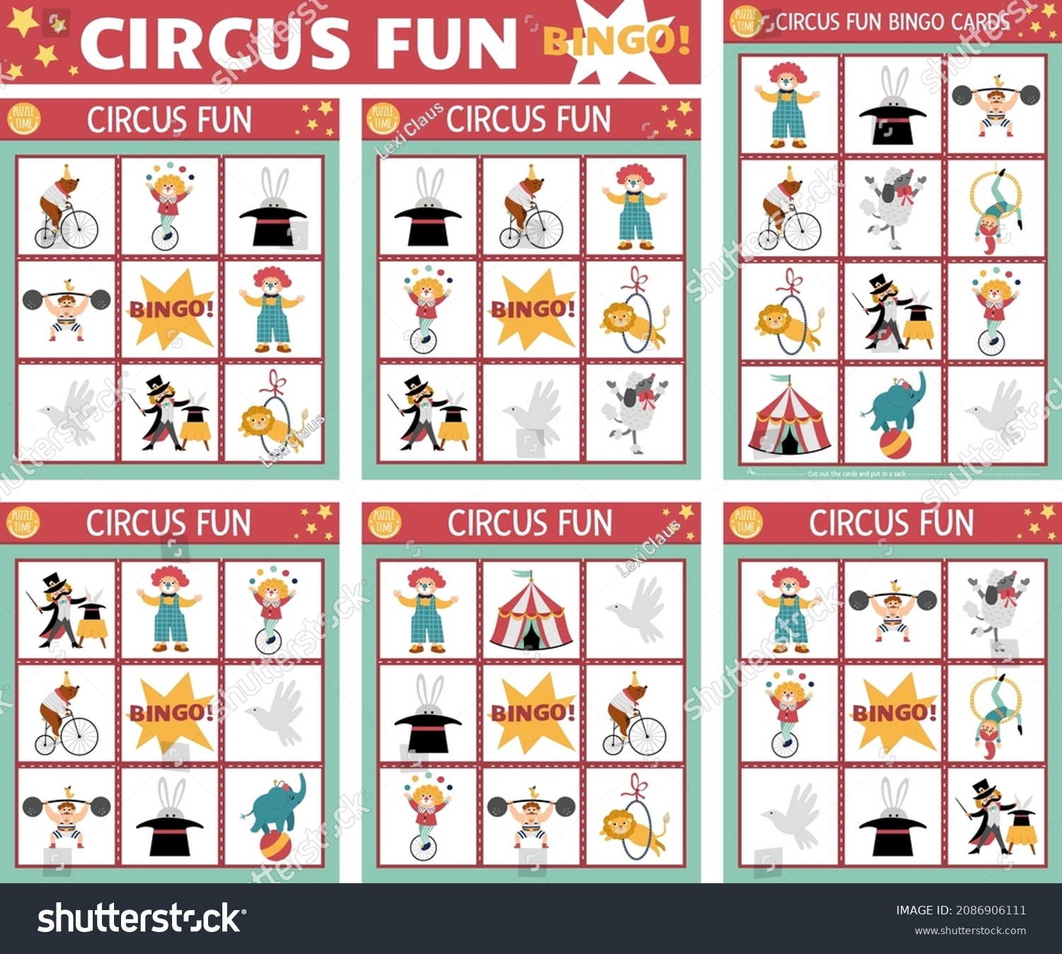 Vector Circus Bingo Cards Set Fun Stock Vector Royalty Free 2086906111 Shutterstock