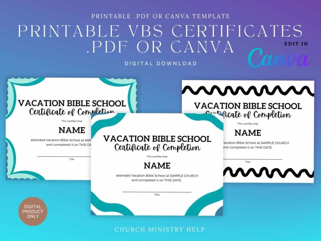 VBS Certificate VBS Vacation Bible School Certificate Of Completion Instant Download 11 x8 5 Etsy