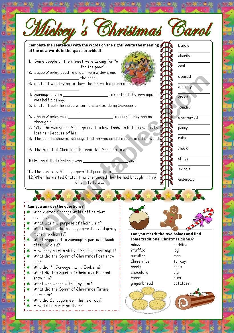 Video Mickey s Christmas Carol Disney ESL Worksheet By Perma