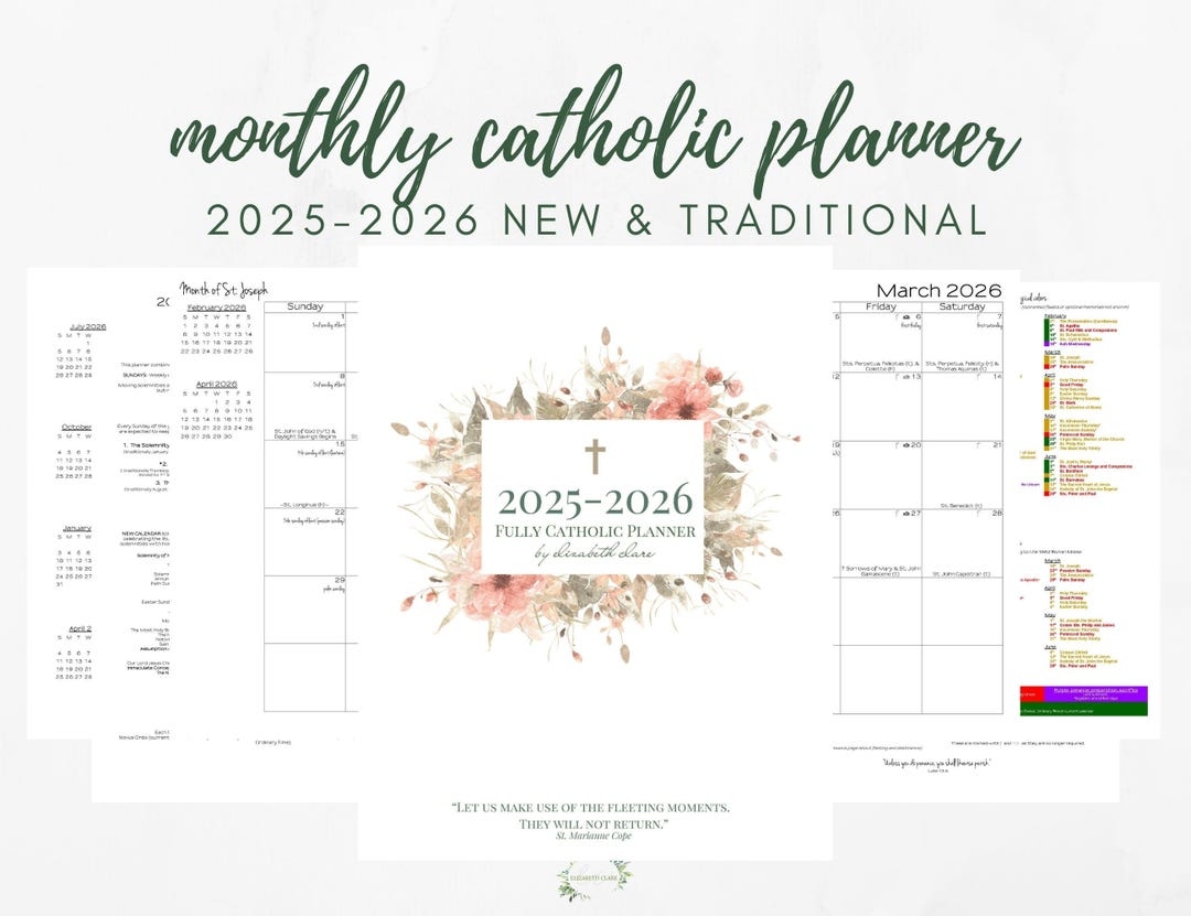 2025 2026 Monthly Catholic Planner Printable PDF Monthly Calendar Catholic Liturgical Year Calendar Catholic Woman Traditional TLM Etsy