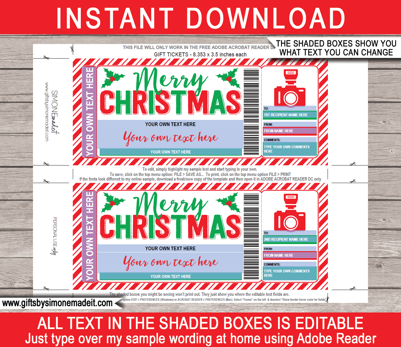 Christmas Movie Ticket Gift Template Family Movie Night Gift Voucher