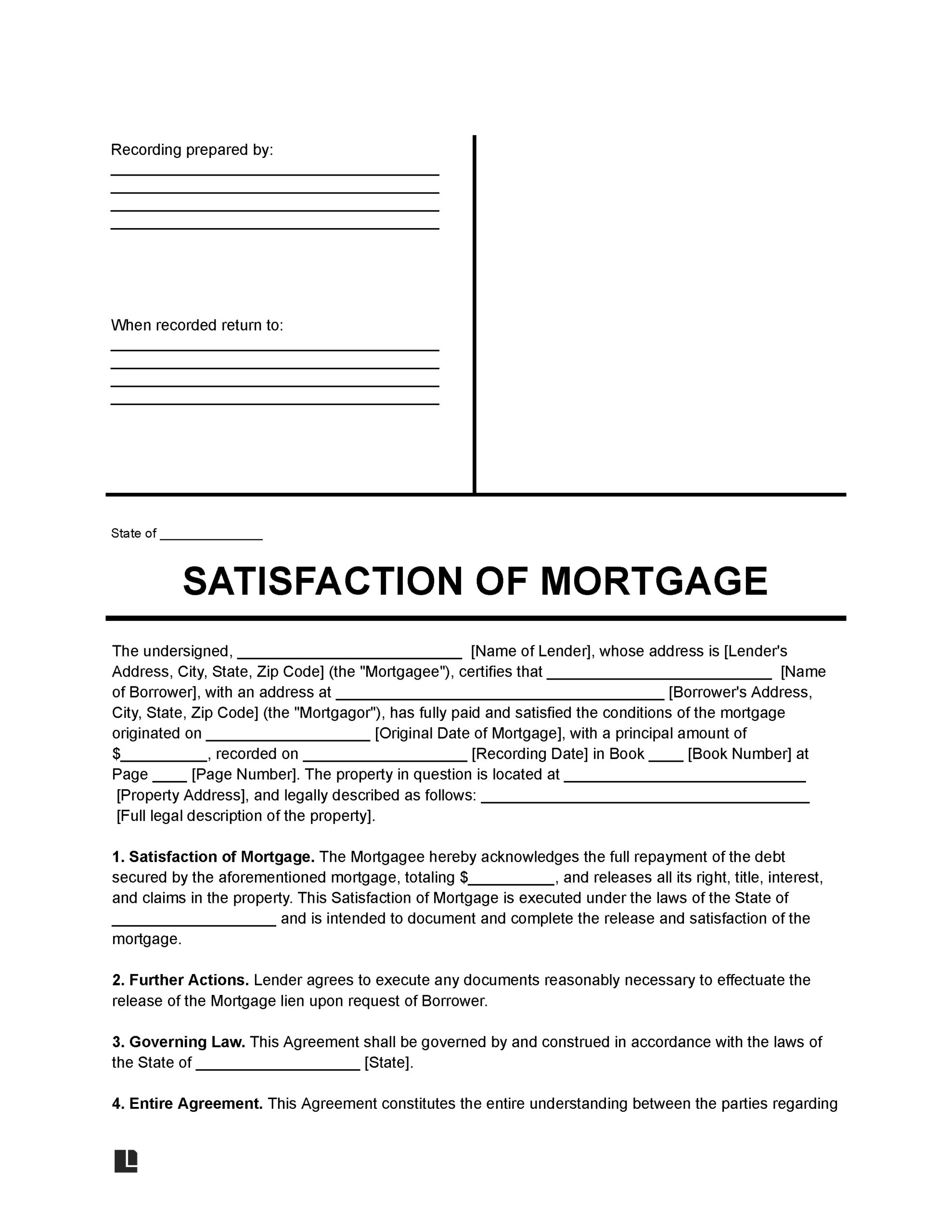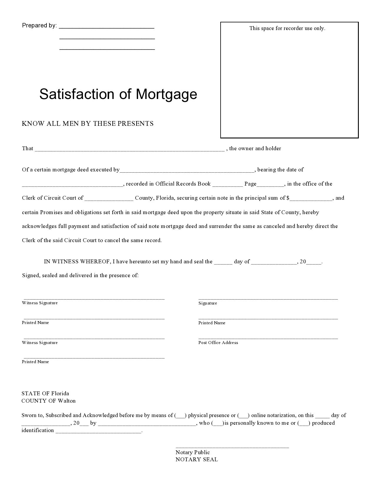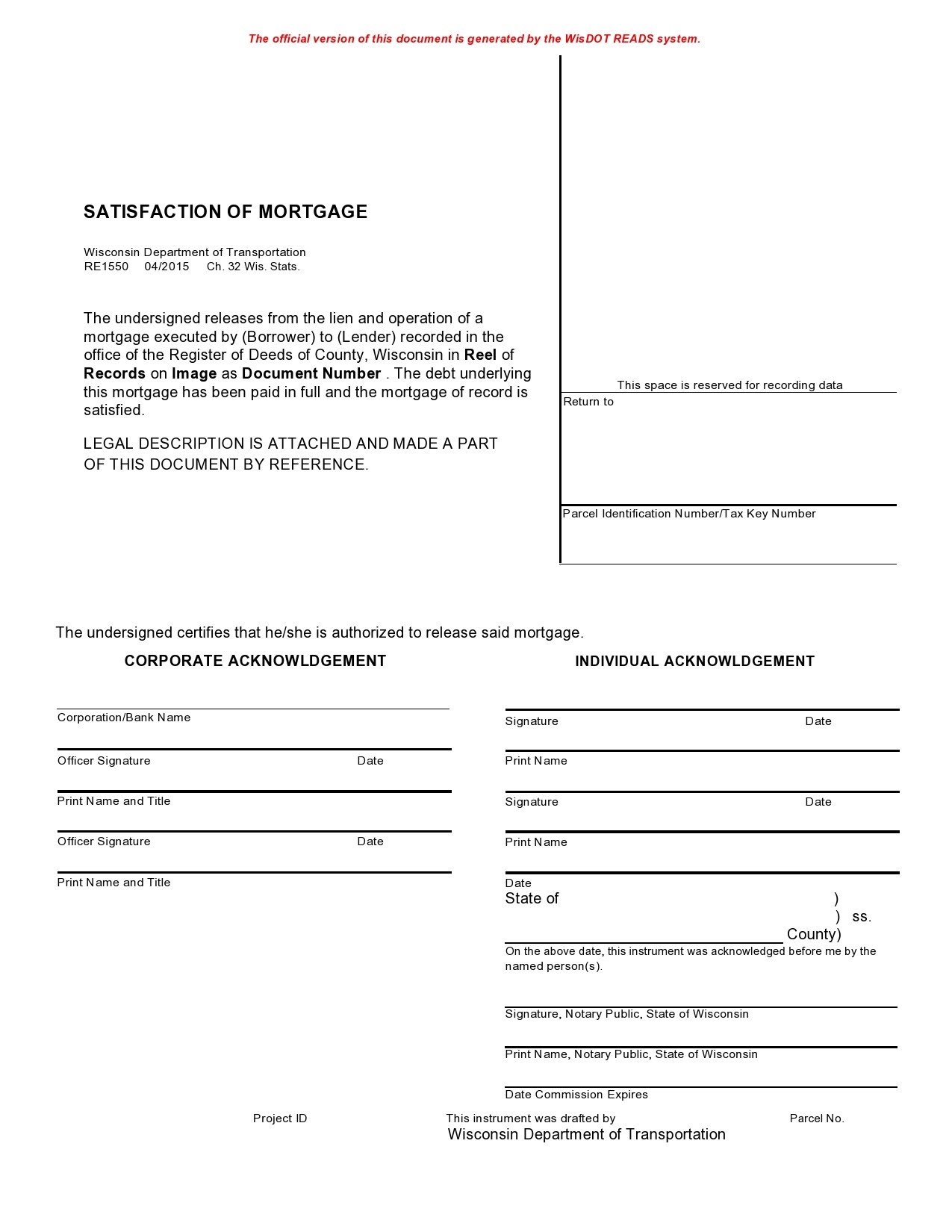 Free Mortgage Lien Release Satisfaction Of Mortgage Form PDF Word EForms