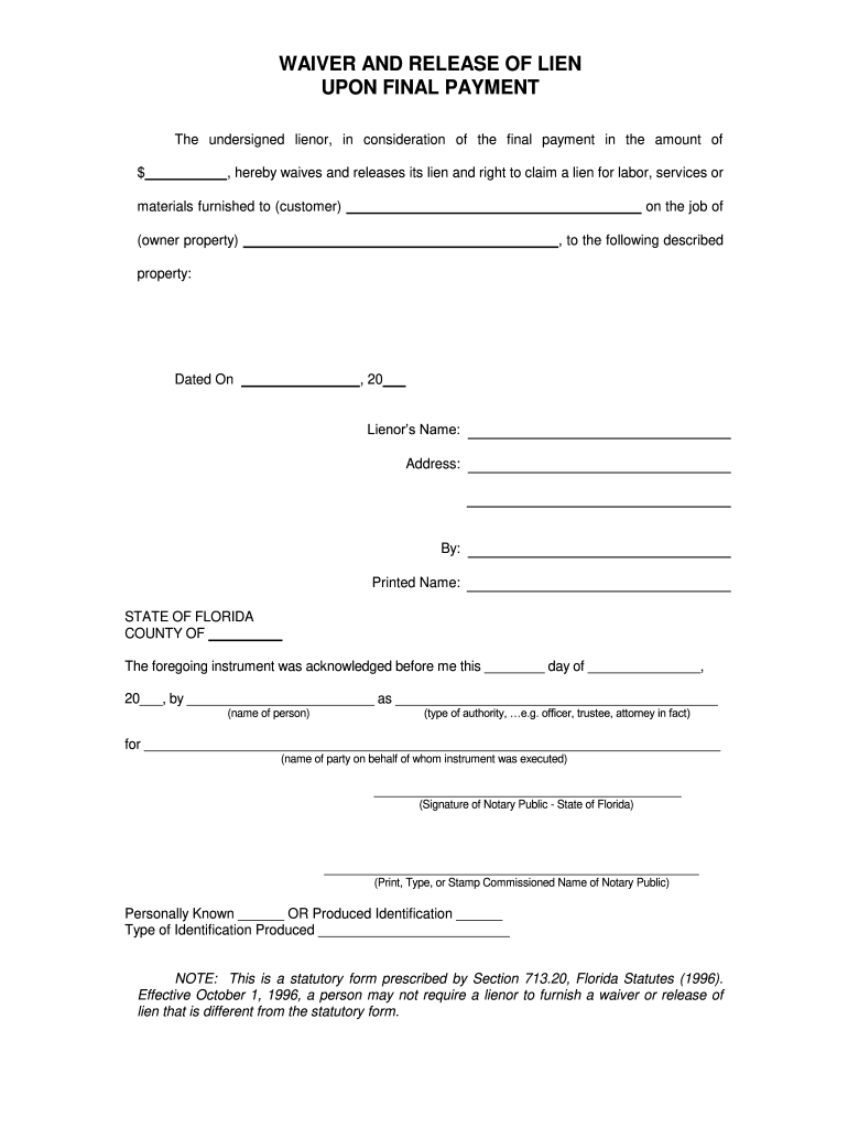 Lien Waiver Release Form Fill Online Printable Fillable Blank PdfFiller