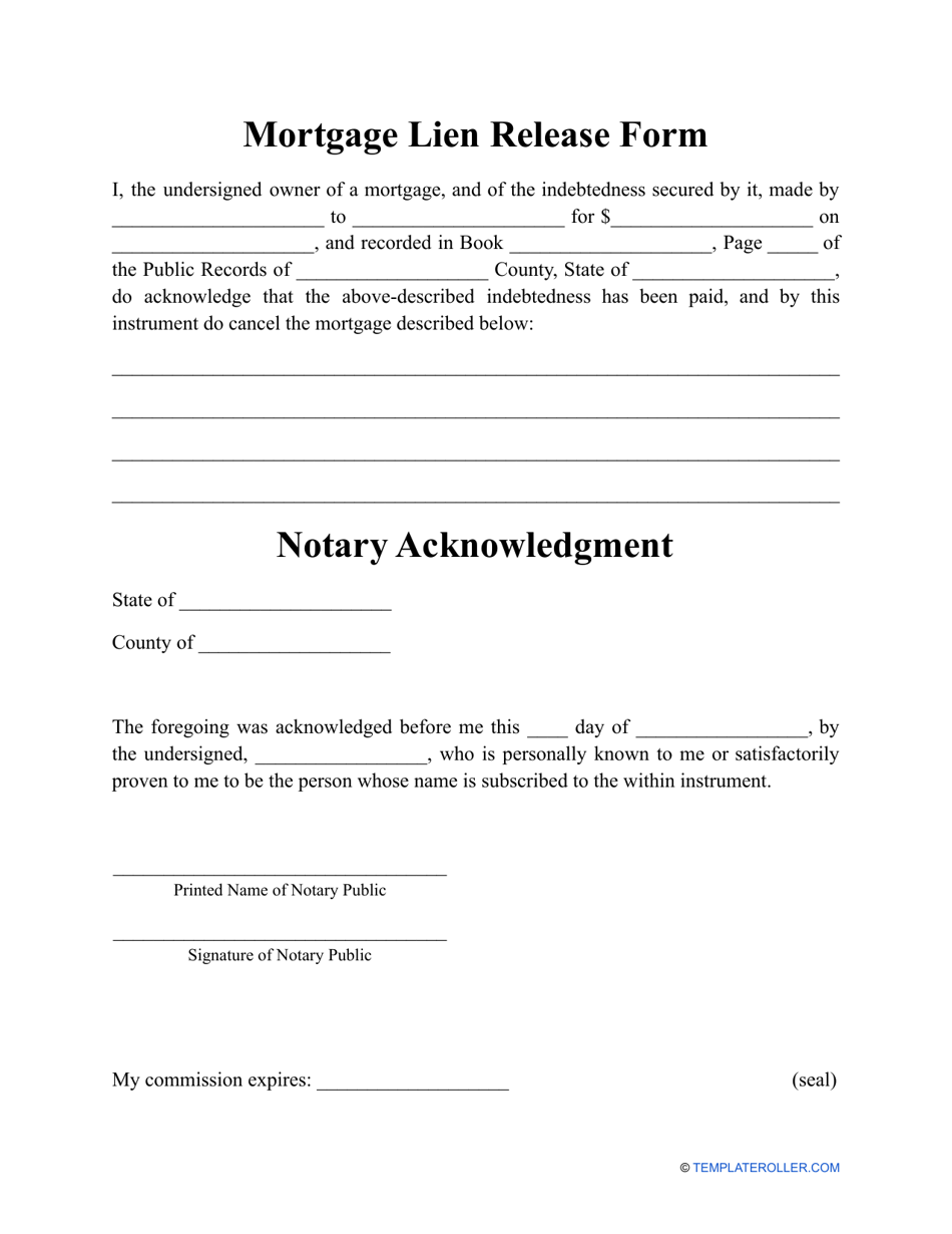 Whether you’re a homeowner looking to release a lien on your property or a lender needing to finalize a mortgage transaction, our free printable form is perfect for your needs. Say goodbye to complicated paperwork and hello to simplicity!