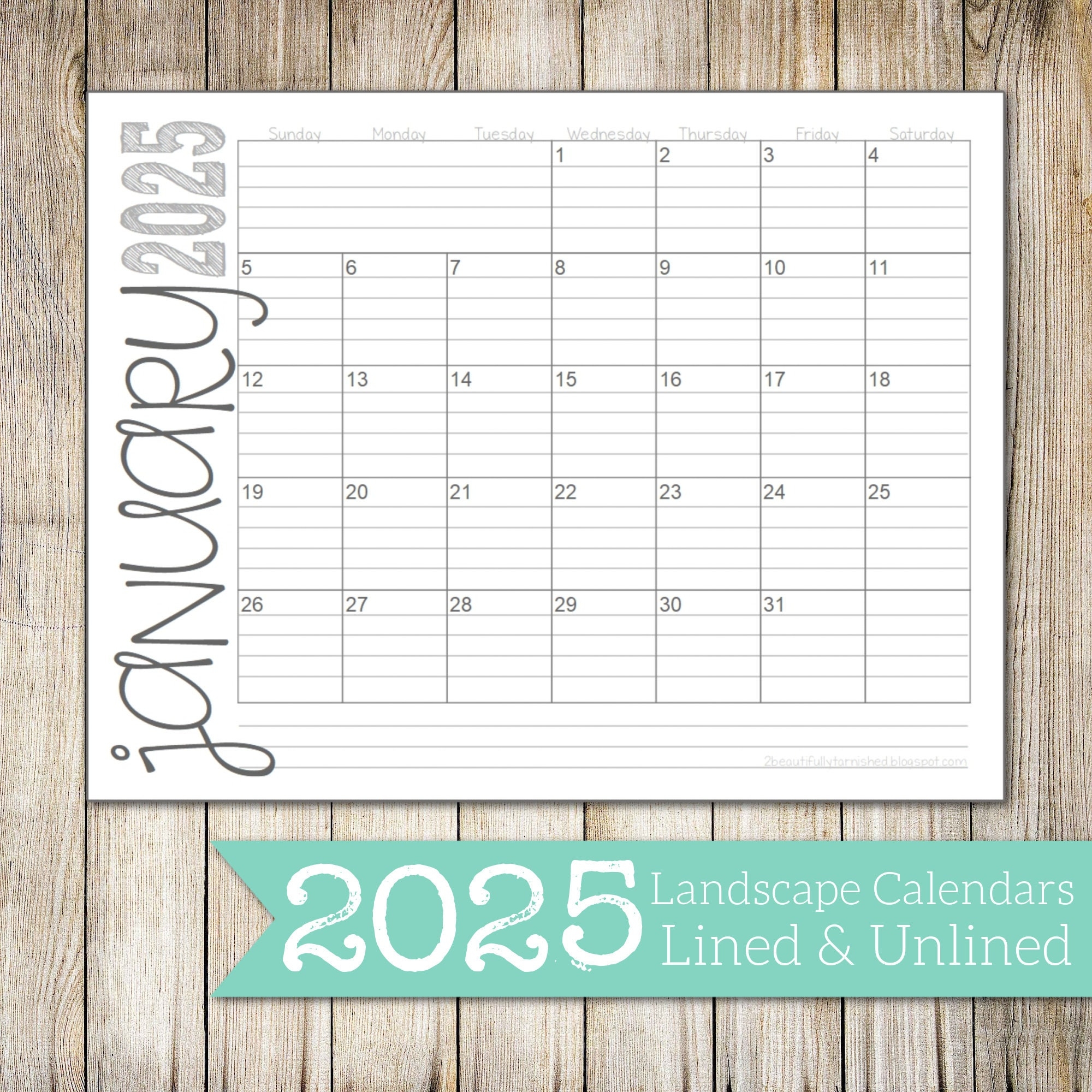 2025 Landscape Lined Unlined Monthly Calendars 8 5x11 LANDSCAPE Jan Dec PDF Printable Download Etsy