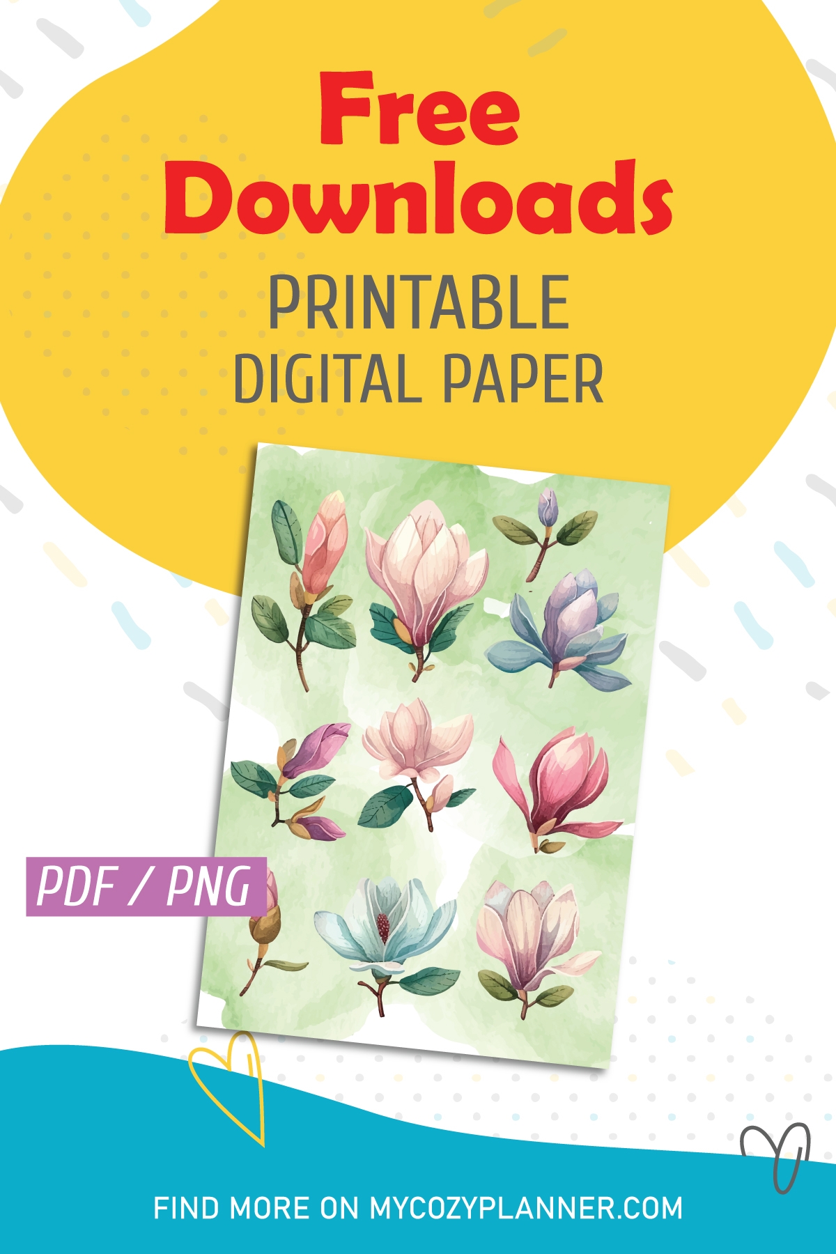 Magnolia Pattern Scrapbook Paper Free Printable Papers MY COZY PLANNER