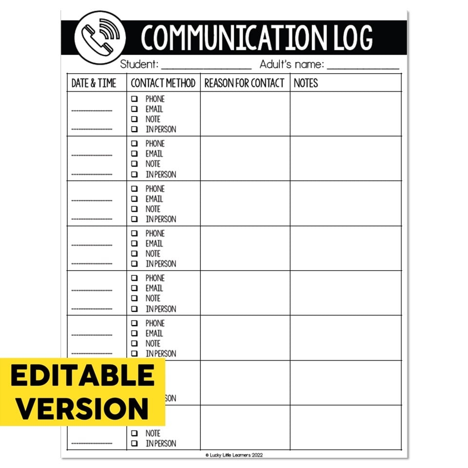 Editable Classroom Setup Back To School Resources Parent Communication Log Lucky Little Learners