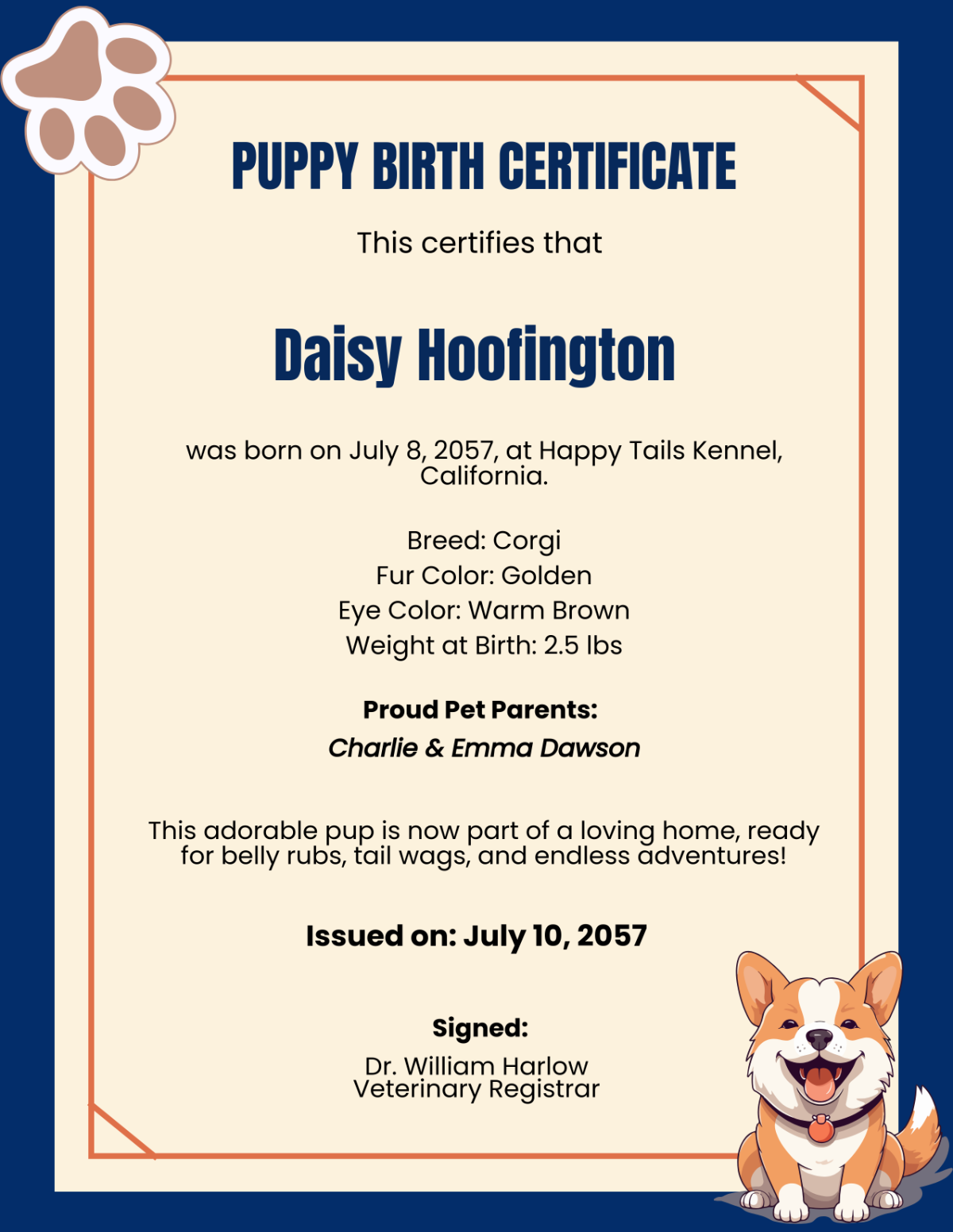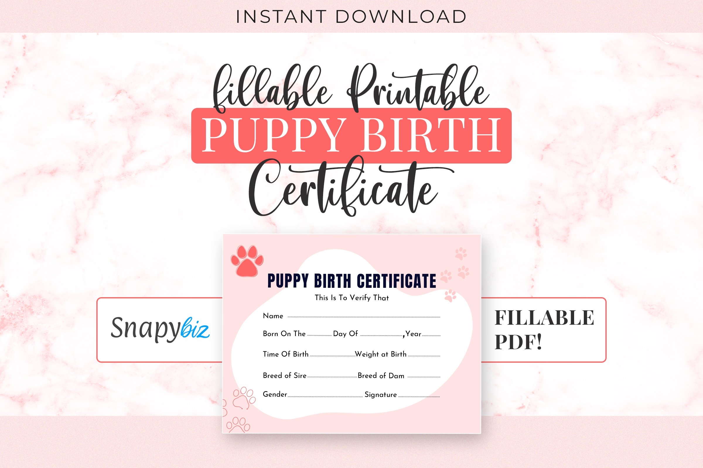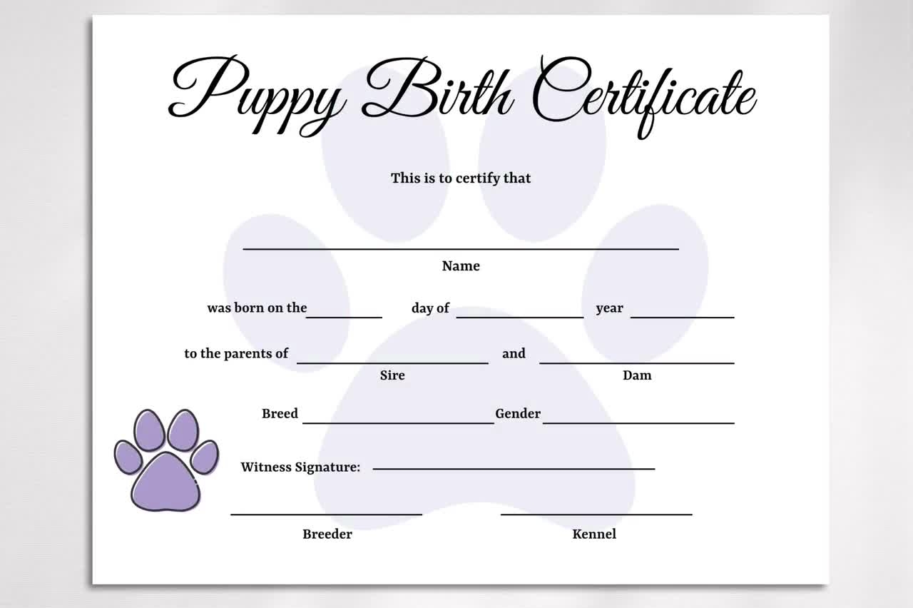 Dog Birth Certificate For Girl Or Boy Puppy Gender Neutral Printable Template Breeder Instant Download Resource Etsy