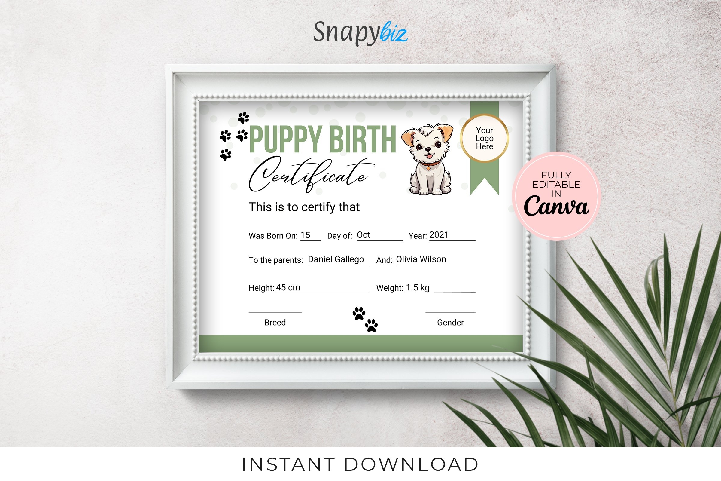 Editable Puppy Birth Certificate Template Dog Adoption Certificate Pet Birth Certificate Dog Breeder Forms Etsy