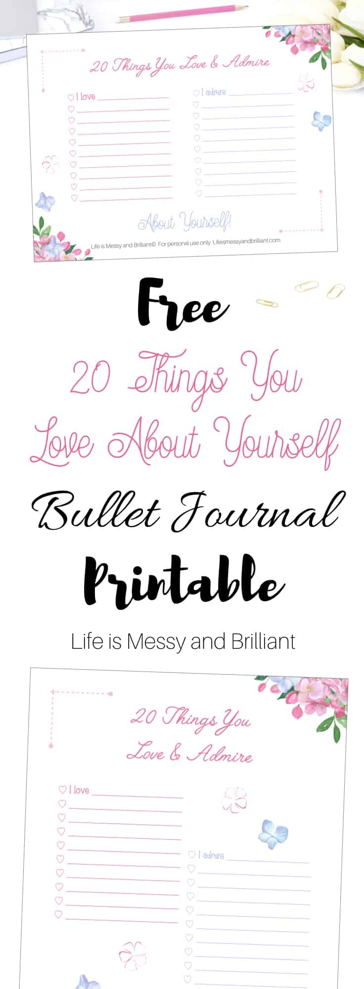 Things You Love About Yourself Self Care Bullet Journal Printable