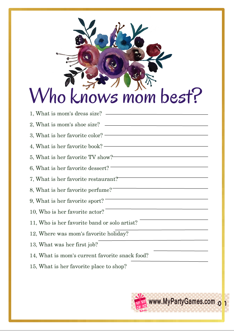 Free Printable Who Knows Mommy Best Questions