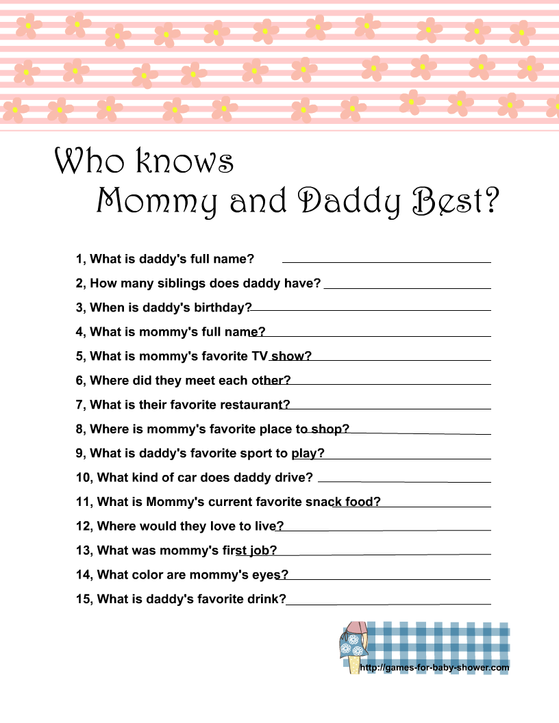 Free Printable Who Knows Mommy And Daddy Best Game