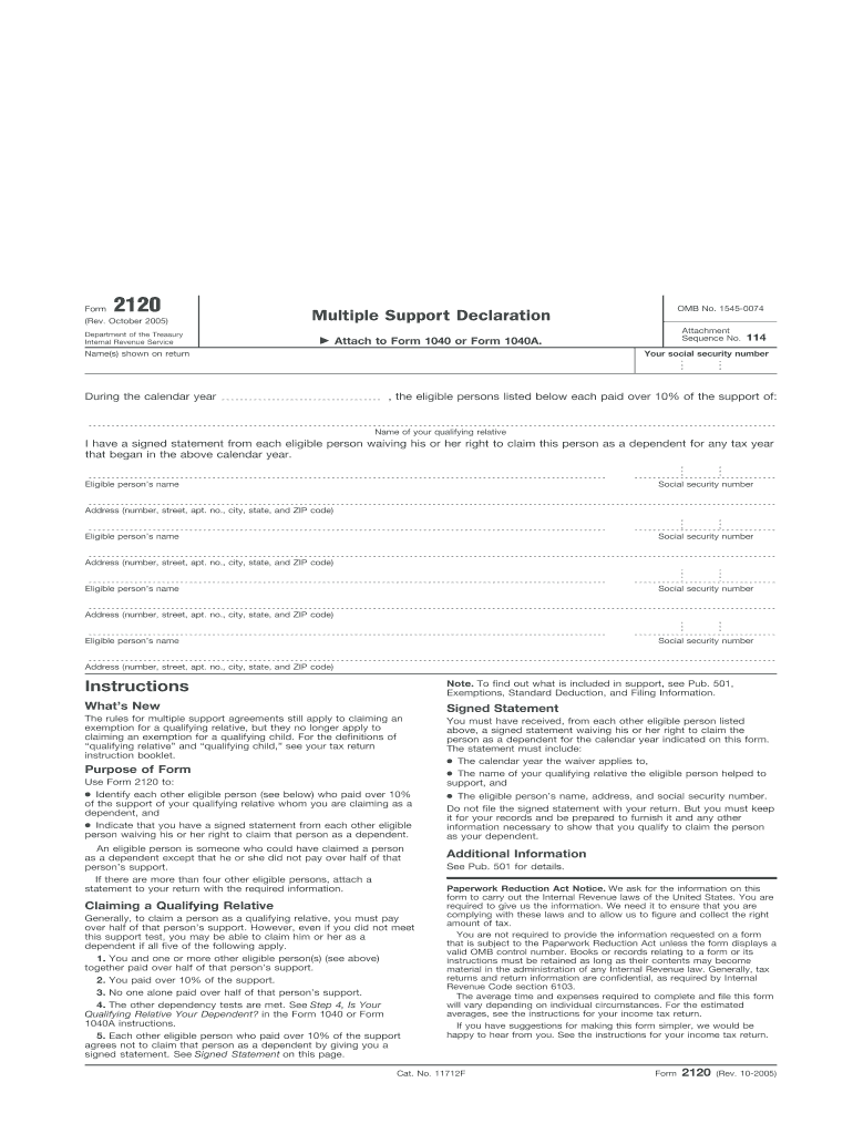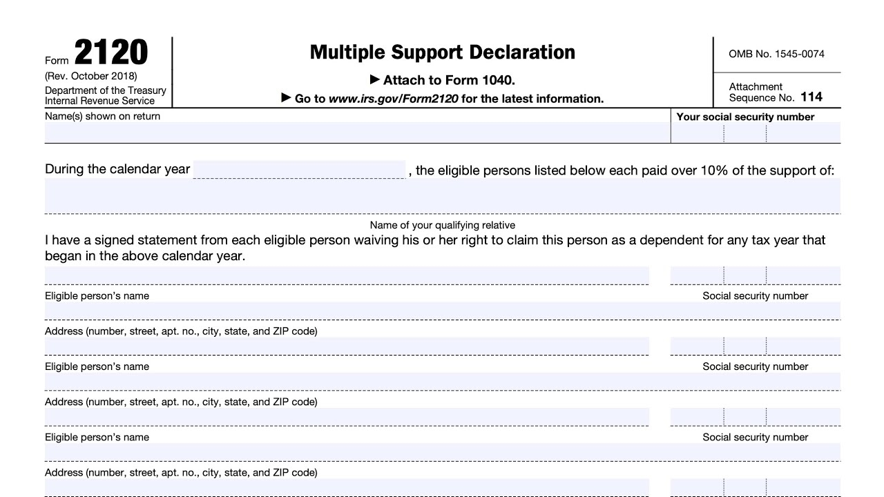 IRS Form 2120 Walkthrough Multiple Support Declaration YouTube