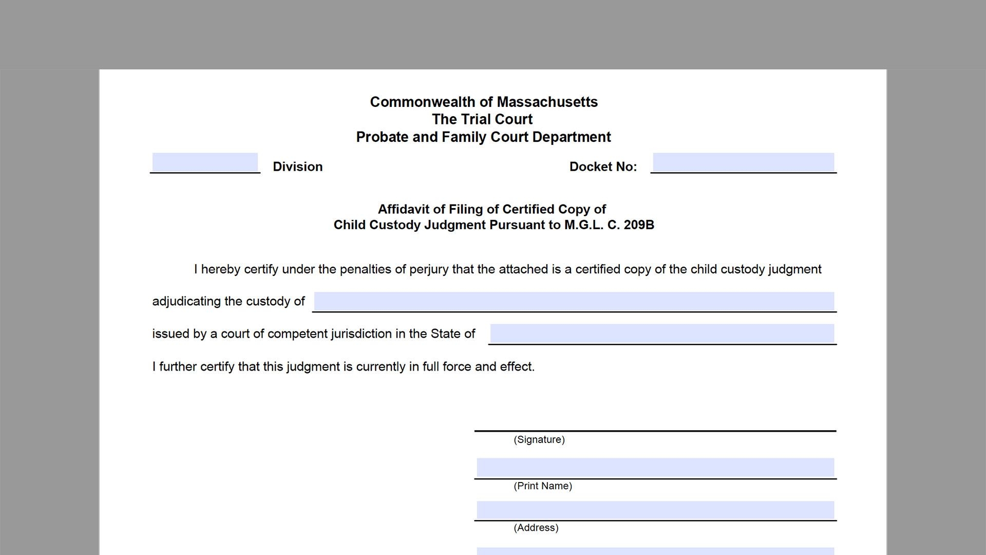 New Form Affidavit Of Filing Certified Copy Of Child Custody Judgment C 209B