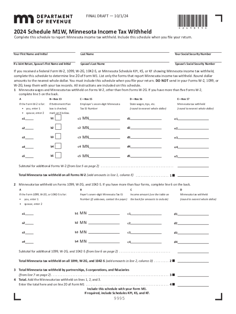 2024 Form MN M1W Fill Online Printable Fillable Blank PdfFiller