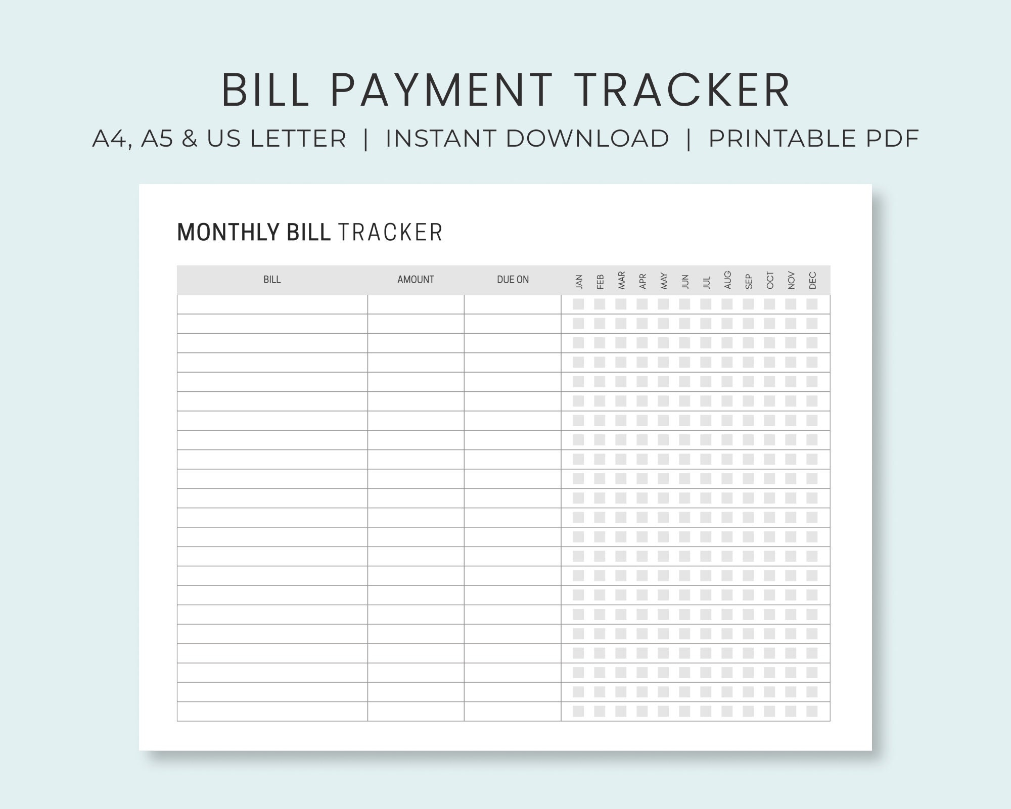 Monthly Bill Tracker Printable Bill Payment Tracker Bill Pay Checklist Organizer Budget Planner A4 A5 US Letter Instant Download Etsy
