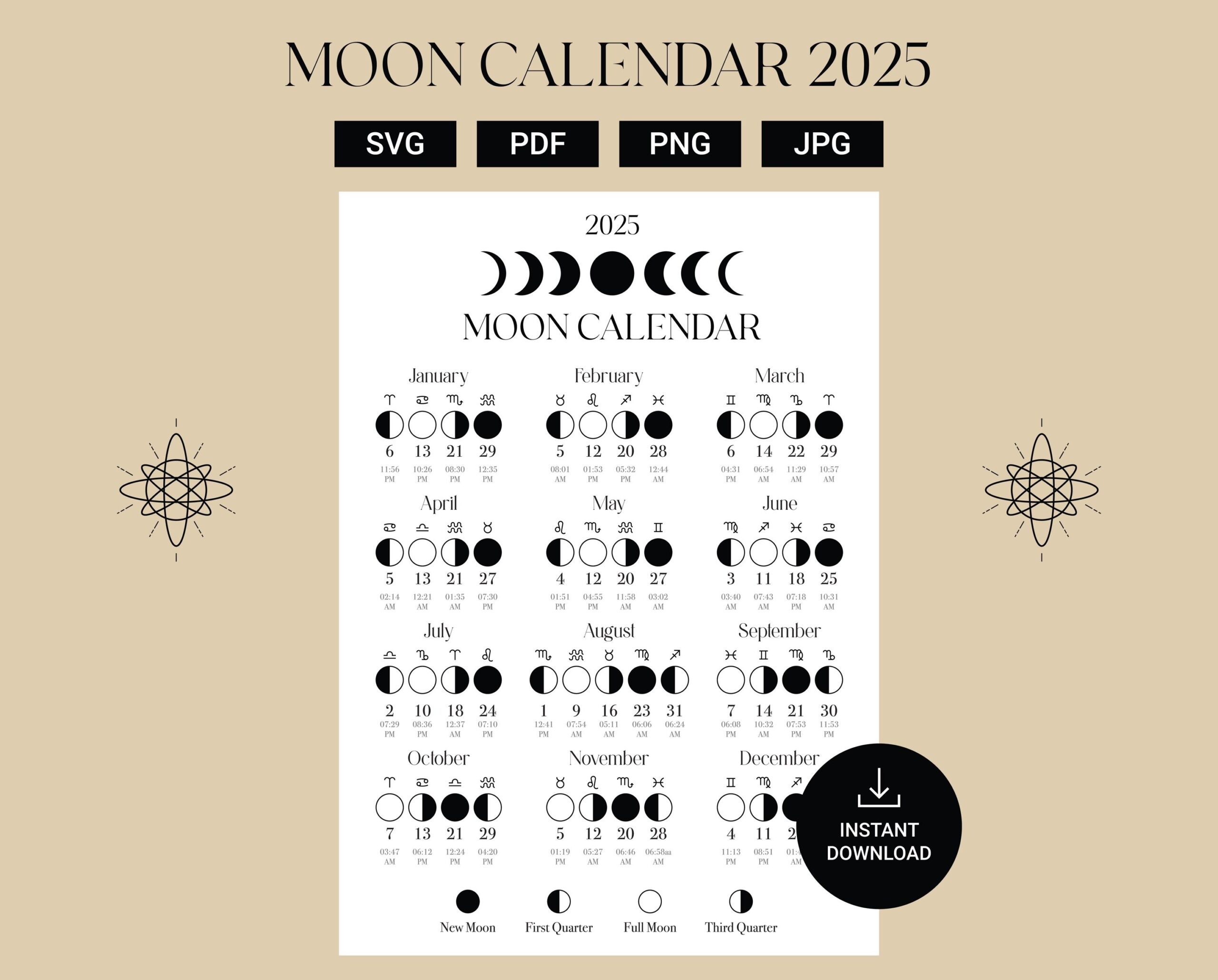 2025 Moon Calendar Moon Phase Calendar Lunar Calendar 2025 Lunar Calendar 2025 Calendar Moon Cycle Moon Phase Planner Etsy