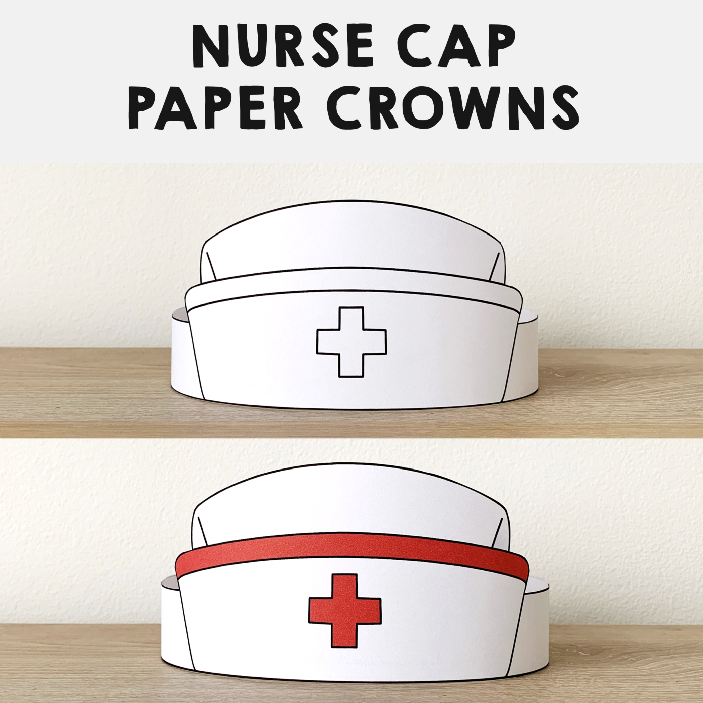 Printable Colored Nurse Paper Hat Kids Party Craft Doctor Costume Pdf Template Digital Download DIY Career Day Costume Occupation Party Mask Etsy