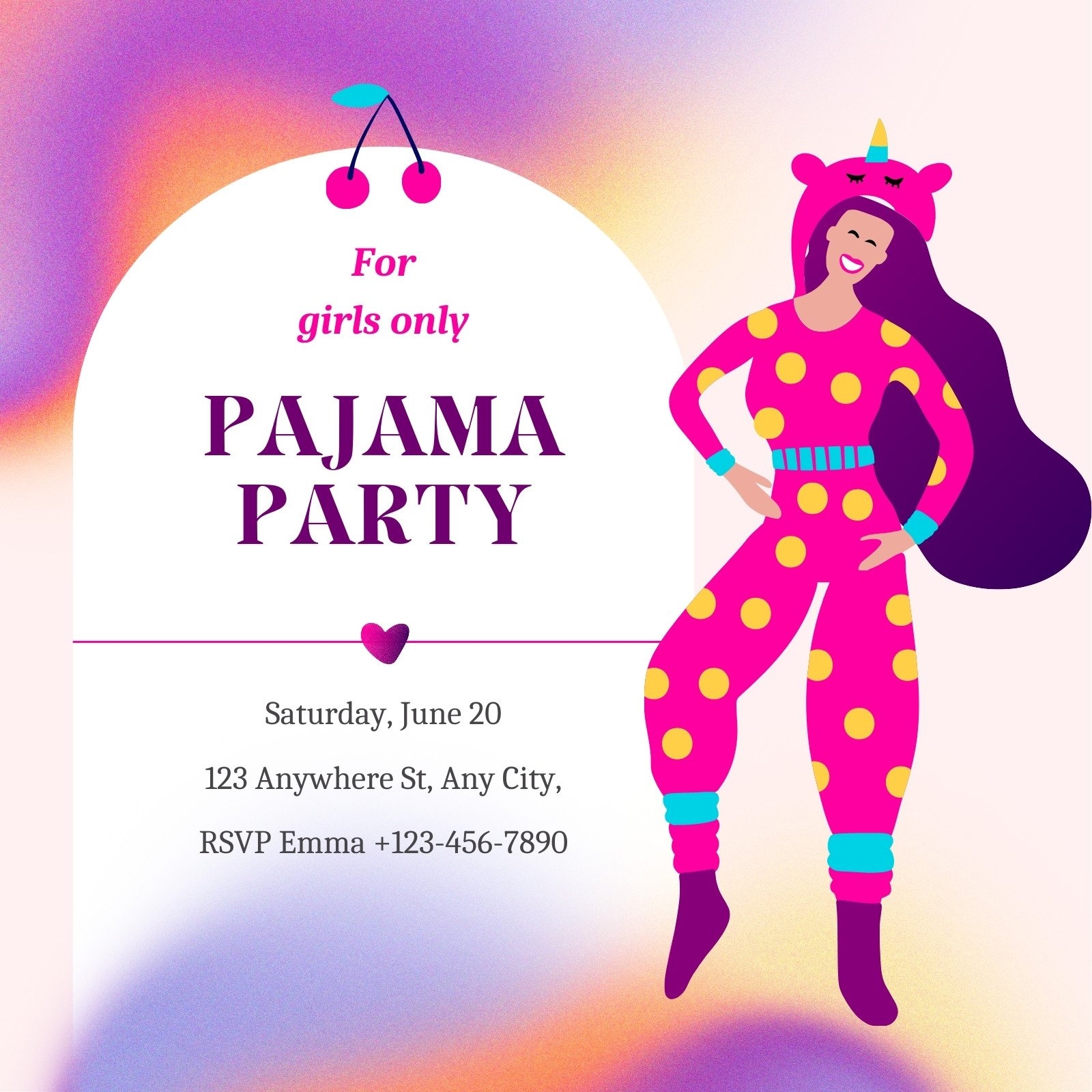 Download your favorite design today and start planning the ultimate pajama party that will have everyone cozy and excited for a night of laughter, snacks, and unforgettable memories. Get ready to throw the best sleepover ever with our adorable and customizable invitations!