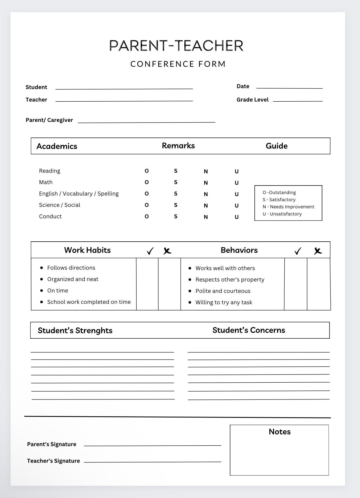 Using a parent-teacher conference form printable can help ensure that you cover all the necessary topics during your meeting. It can also serve as a helpful reference point for follow-up discussions or tracking student improvement over time.
