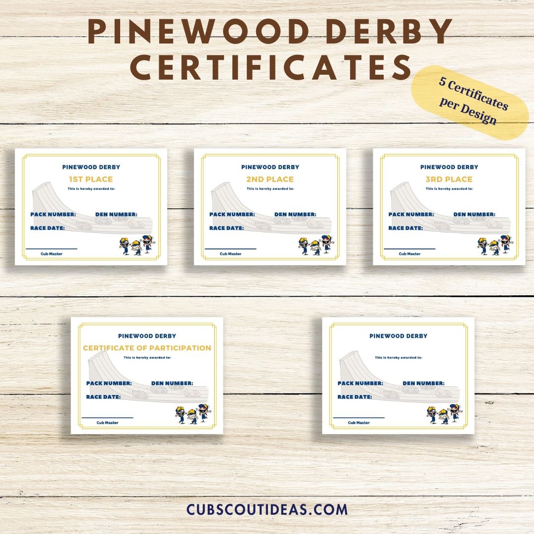Pinewood Derby Printable Certificates Bundle Cub Scout Ideas