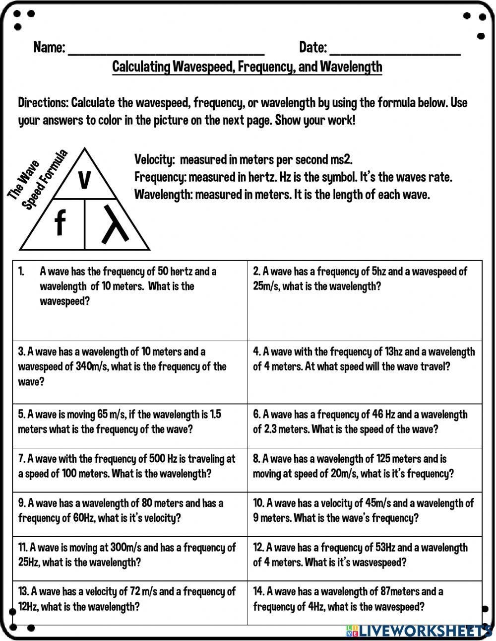 Calculating Speed Of Waves Frequency And Velocity Worksheet Worksheets Library