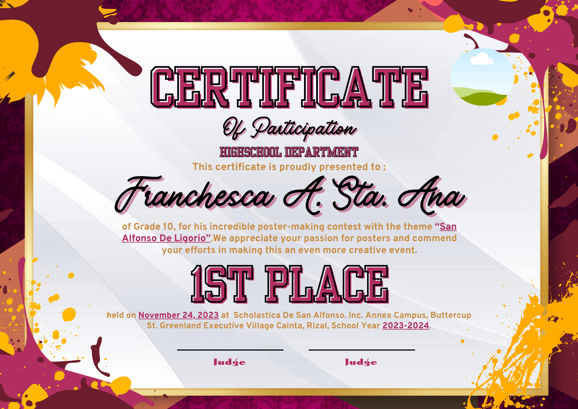 Pink Red Yellow And Orange Artistic Poster Certificate Template By Crimsonzech Raket PH