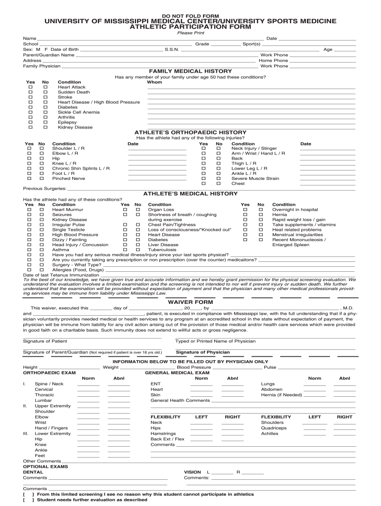 Printable Adult Sports Physical Form