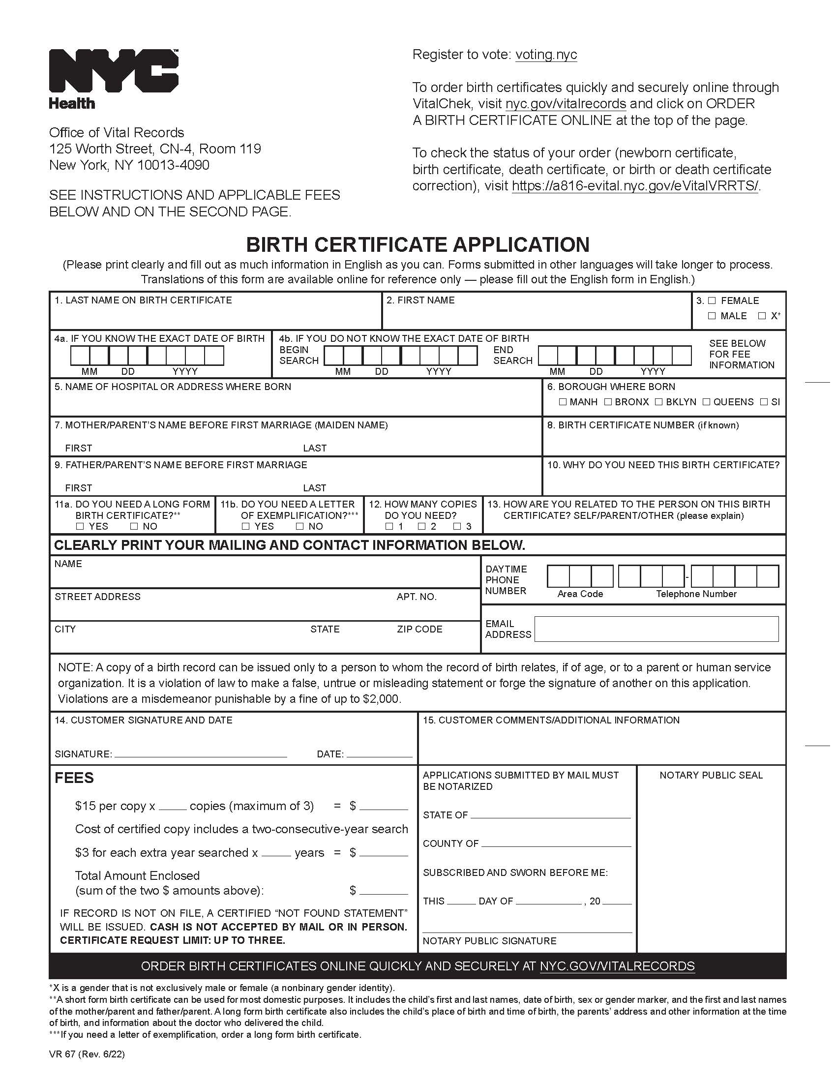 Printable Birth Certificate Application Form