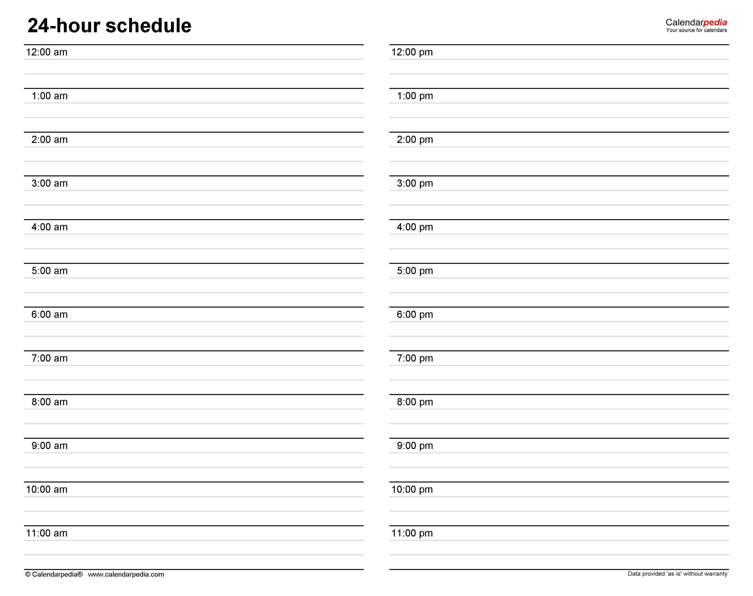 Printable Daily Hourly Schedule Template