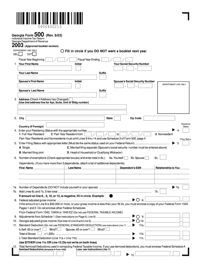 Printable Georgia Form 500 Fill Online Printable Fillable Blank PdfFiller