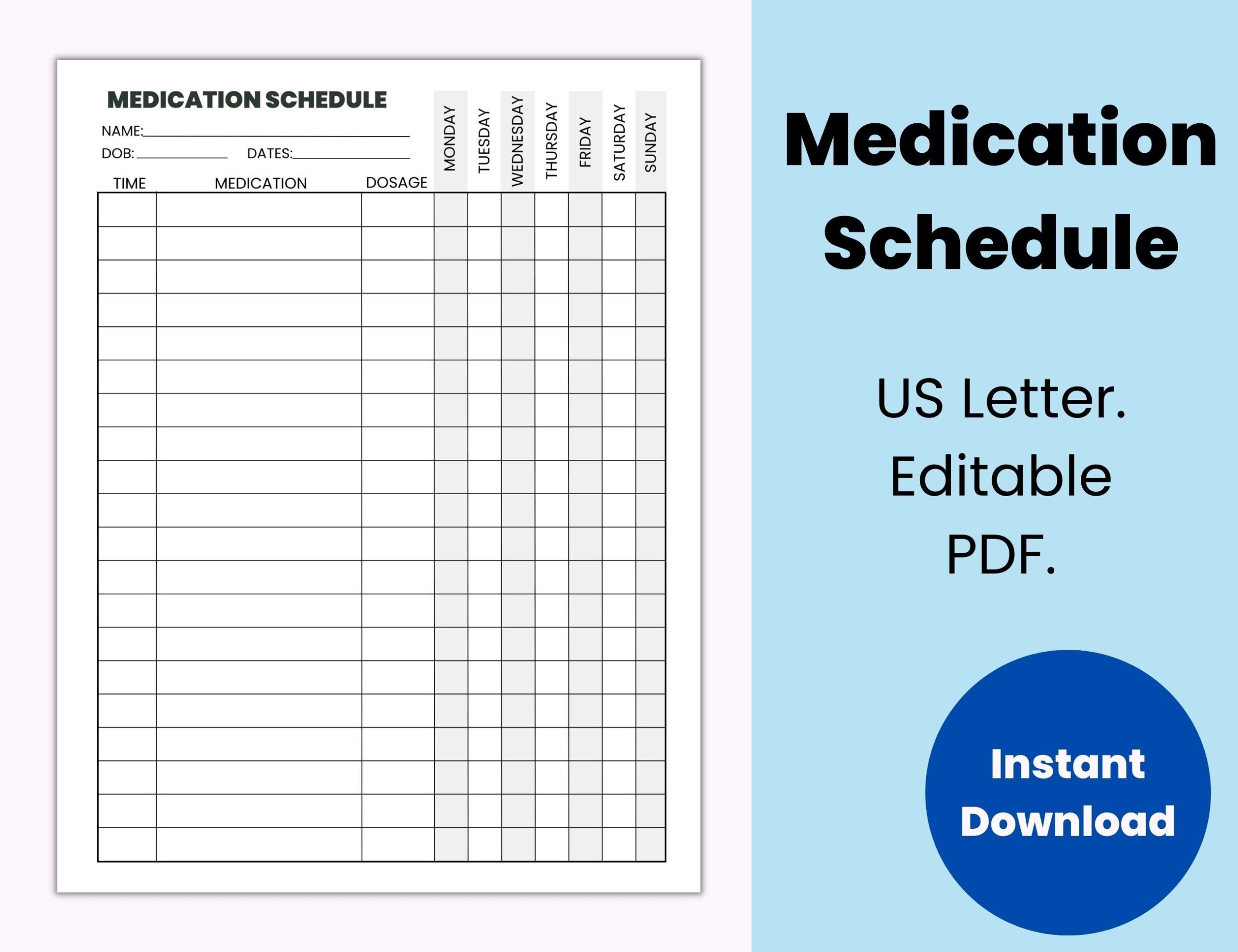 Editable Medication Schedule Medication Tracker Printable Pill Tracker Fillable PDF Etsy