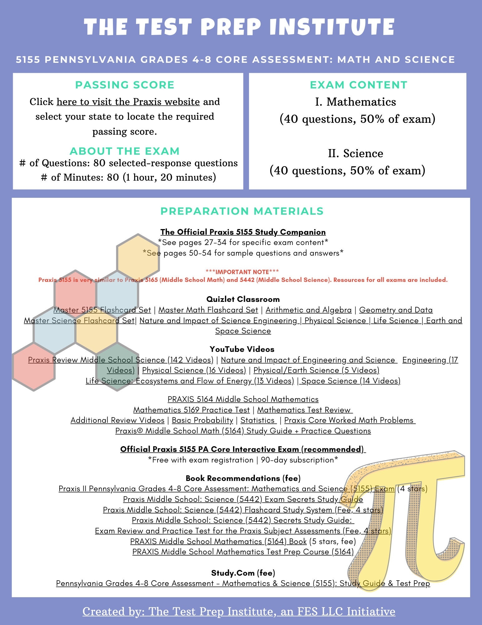 Praxis 5155 Pennsylvania Grades 4 8 Core Assessment Math And Science Etsy