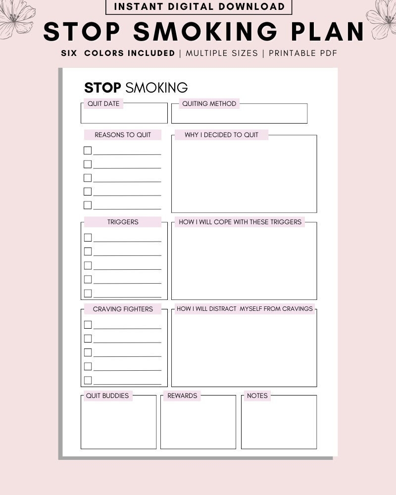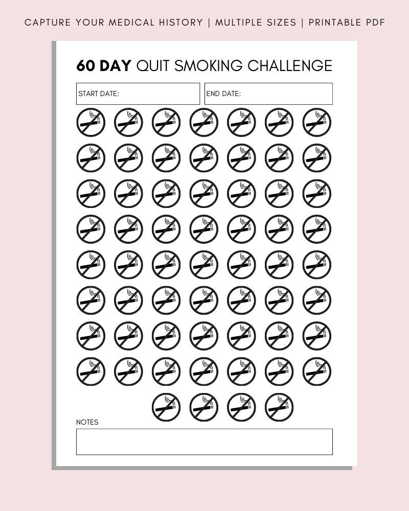 Quit Smoking Printable Challenge Stop Smoking Tracker 60 Day Challenge Stop Smoking Planner Printable Quit Smoking Quit Smoking Etsy