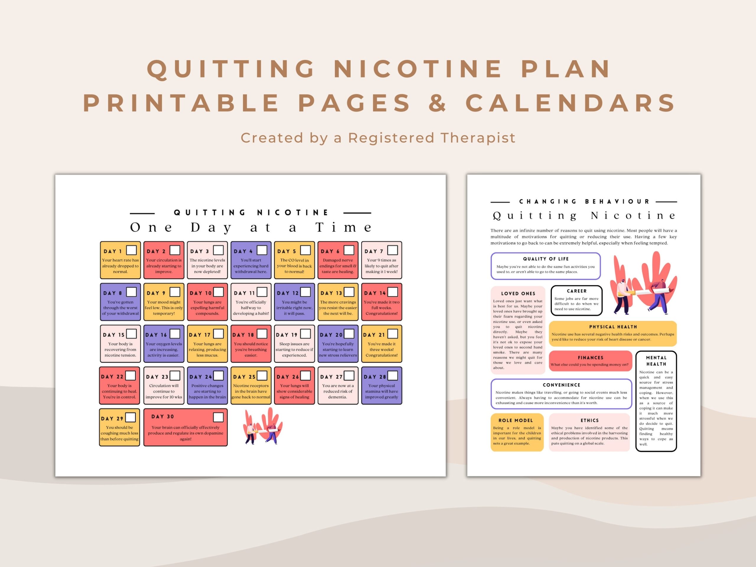Quitting Nicotine Motivating Calendar And Motivation Worksheets Quit Smoking Workbook What To Expect Worksheets Weekly Progress Tracker Etsy