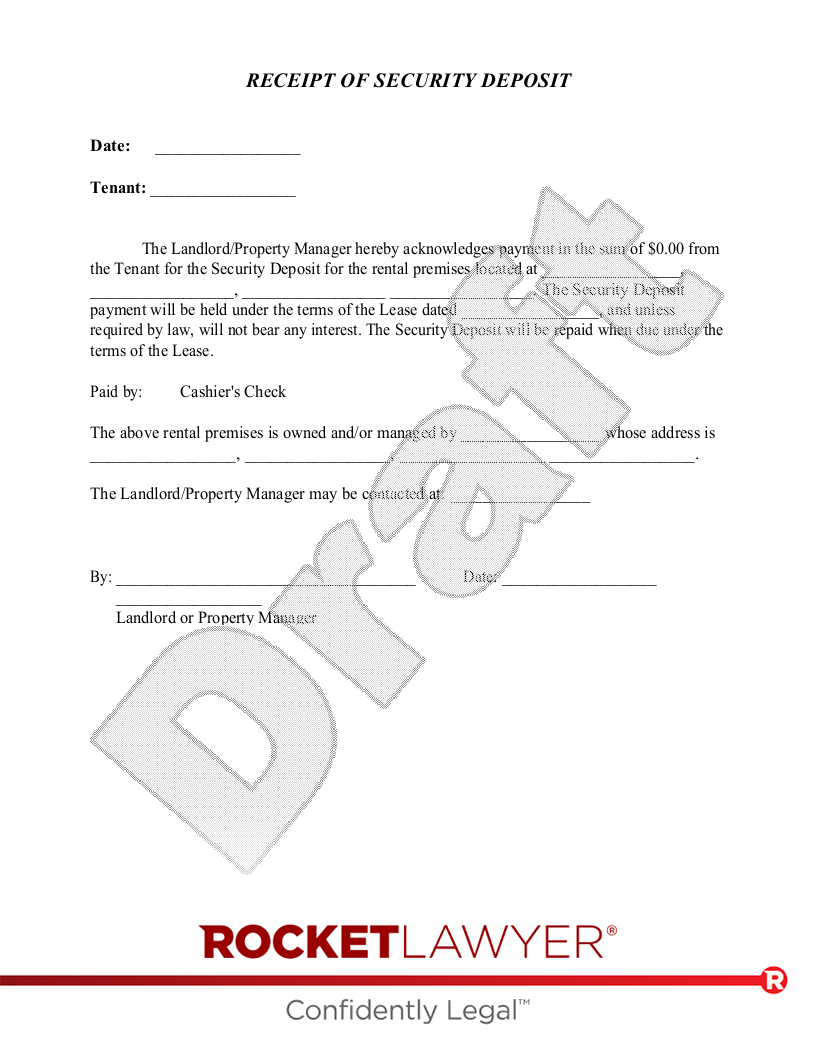 Printable Security Deposit Receipt Template